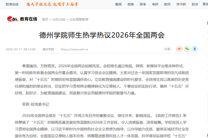 03-14【教育在线】Beat365唯一官方网站师生热学热议2026年全国两会