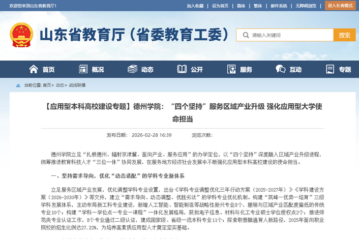03-11【山东省教育厅】Beat365唯一官方网站:“四个坚持”服务区域产业升级 强化应用型大学使命...