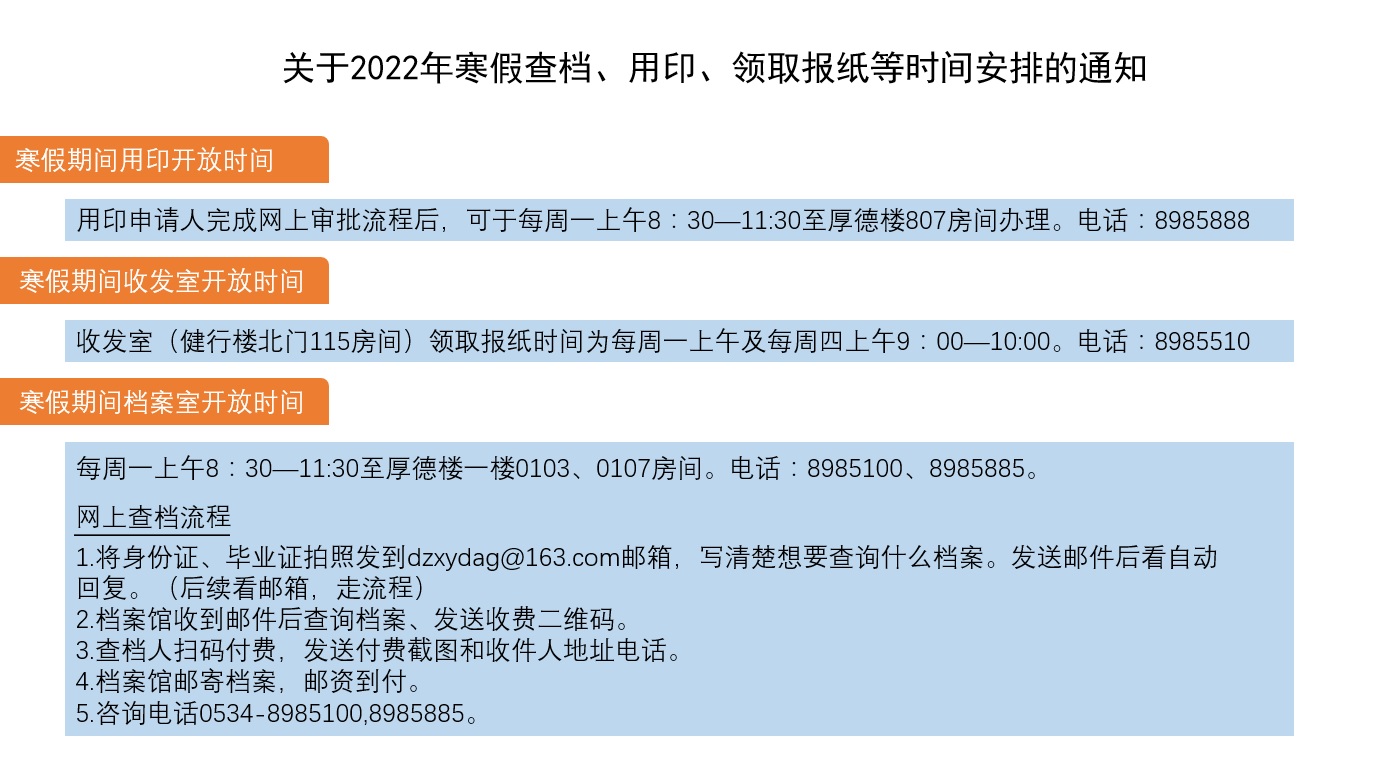 关于2022年寒假查档、用印、收发室开放时间的通知