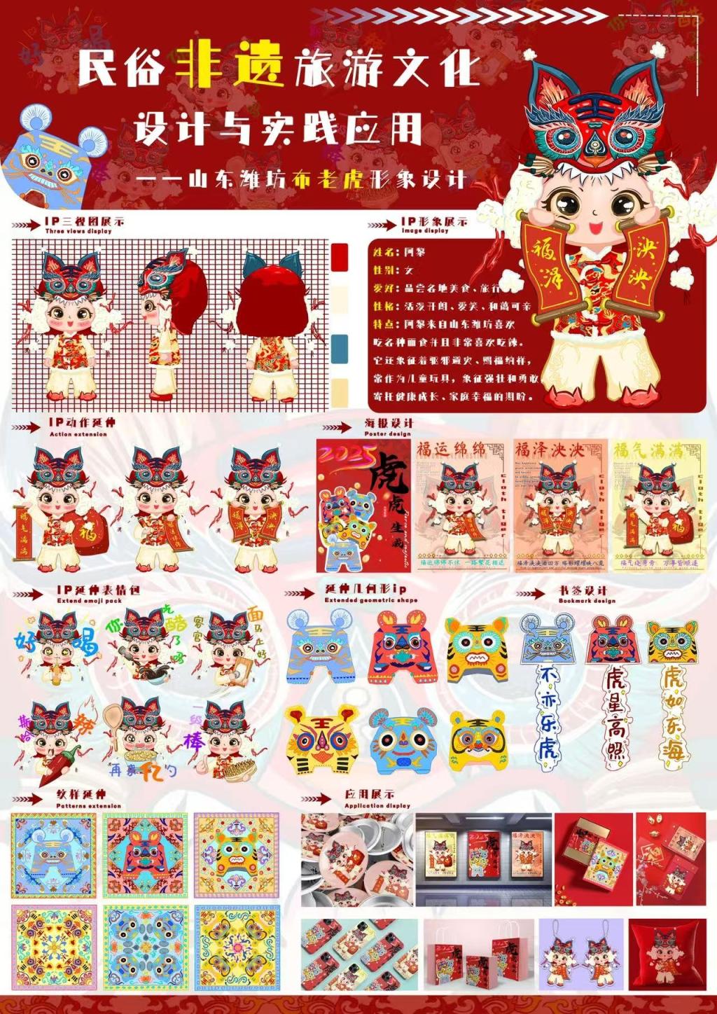 作品名称:《民俗非遗旅游文化设计与实践应用——山东潍坊布老虎形象设计》作者:惠丽秀 指导教师:李俊乾