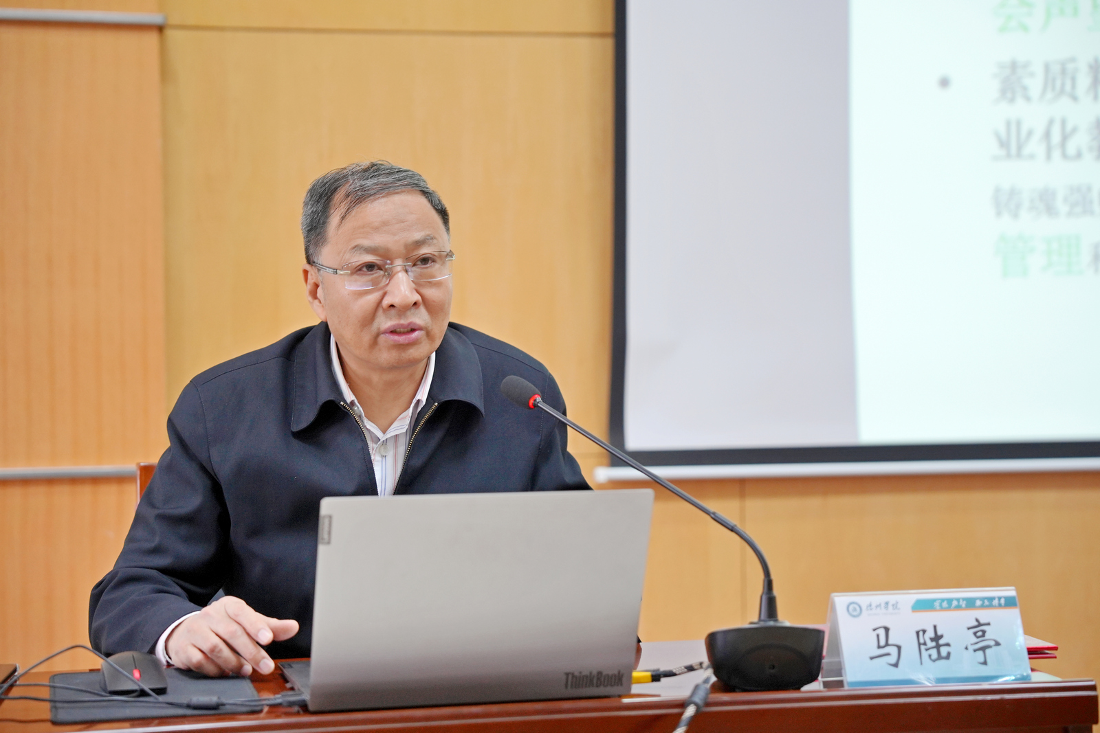 为进一步弘扬教育家精神,引导广大教师自觉用教育家精神铸魂强基,深刻理解教育强国内涵,切实提升履职能力,纵深推进Beat365官网师资队伍建设,4月18日上午,学校在厚德楼四楼报告厅举办“弘扬教育家精神,建设高素质专业化教师队伍”名师讲坛活动。活动邀请中国教育科学研究院研究员、原副院长,中国高等教育学会学术发展咨询委员会副主任兼秘书长,原教育部教育发展研究中心副主任兼学术委员会主任马陆亭作专题讲座。