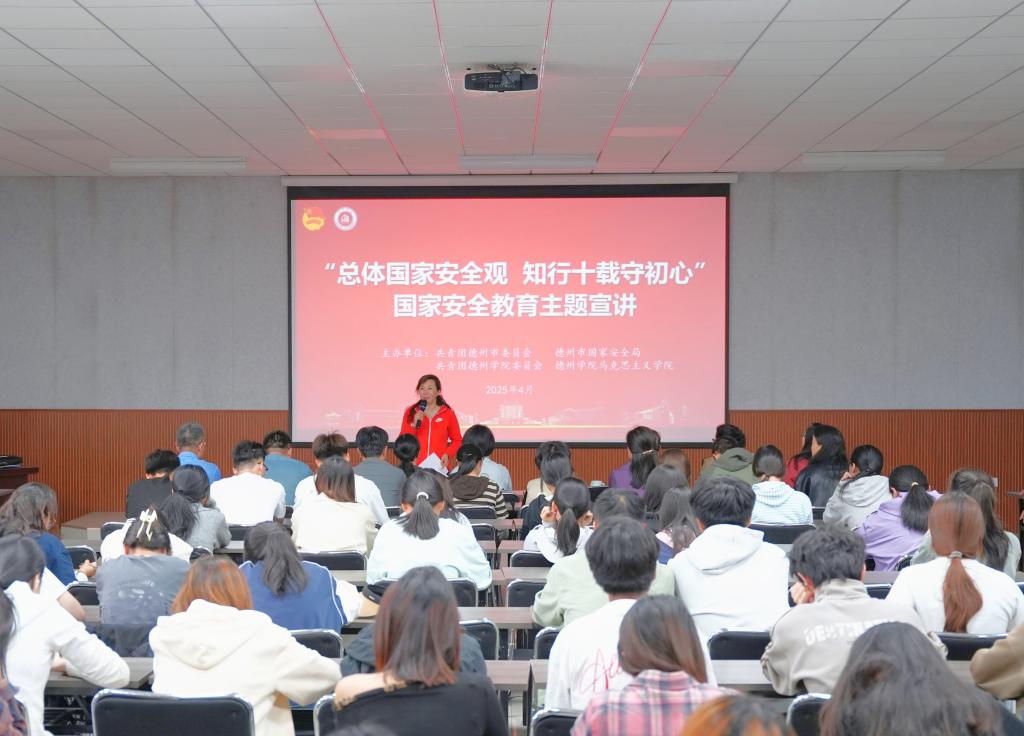 2025年是国家安全法颁布实施10周年,在第十个全民国家安全教育日来临之际,为深入贯彻习近平总书记关于加强国家安全教育的重要指示批示精神,落实《关于全面加强国家安全教育的意见》《教育部思想政治工作司关于组织开展2025 年全民国家安全教育日活动的通知》有关要求,学校联合共青团德州市委、德州市国家安全局举办的“总体国家安全观 知行十载守初心”主题宣讲活动。各学院师生代表共计180余人参加。