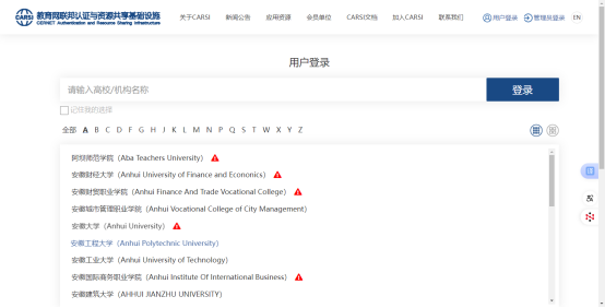 CARSI服务,是由中国教育和科研计算机网CERNET网络中心管理,北京大学计算中心研发并提供技术支持,为已经建立校园网统一身份认证的高校和科研单位,提供联邦认证和全球学术信息资源共享服务。加入CARSI,高校师生可以不必通过校园IP地址确认身份,无需使用VPN,就可以在校外任何地方使用校园网账号直接访问学校采购的电子期刊、电子图书等学术资源。