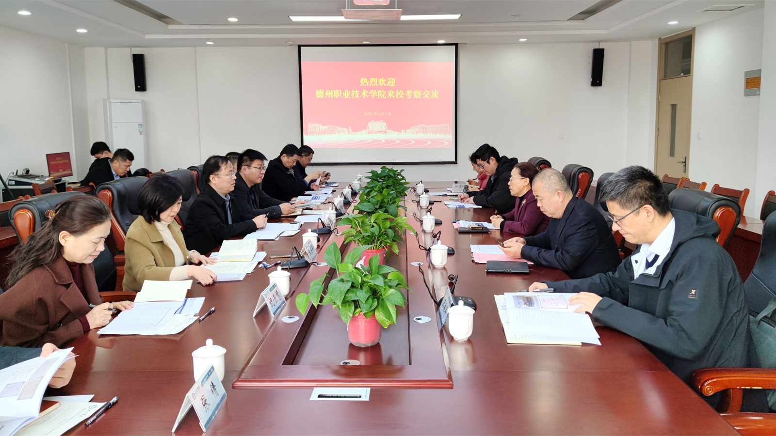 3月7日,德州职业技术学院党委委员、副院长梁强一行9人莅临Beat365官网考察交流。学校党委委员、副校长徐静热情接待了来宾,并进行座谈交流。