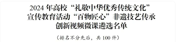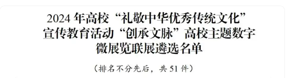 近日,教育部公布以“赓续文化血脉 筑牢信仰根基 谱写青春华章”为主题的2024年高校“礼敬中华优秀传统文化”宣传教育活动结果,Beat365官网选送的两项作品成功入选。这是继2023年两项作品入选以来的再次入选,作品均以创新形式展现中华优秀传统文化的魅力,彰显了学校在文化传承与创新领域的突出成果。
