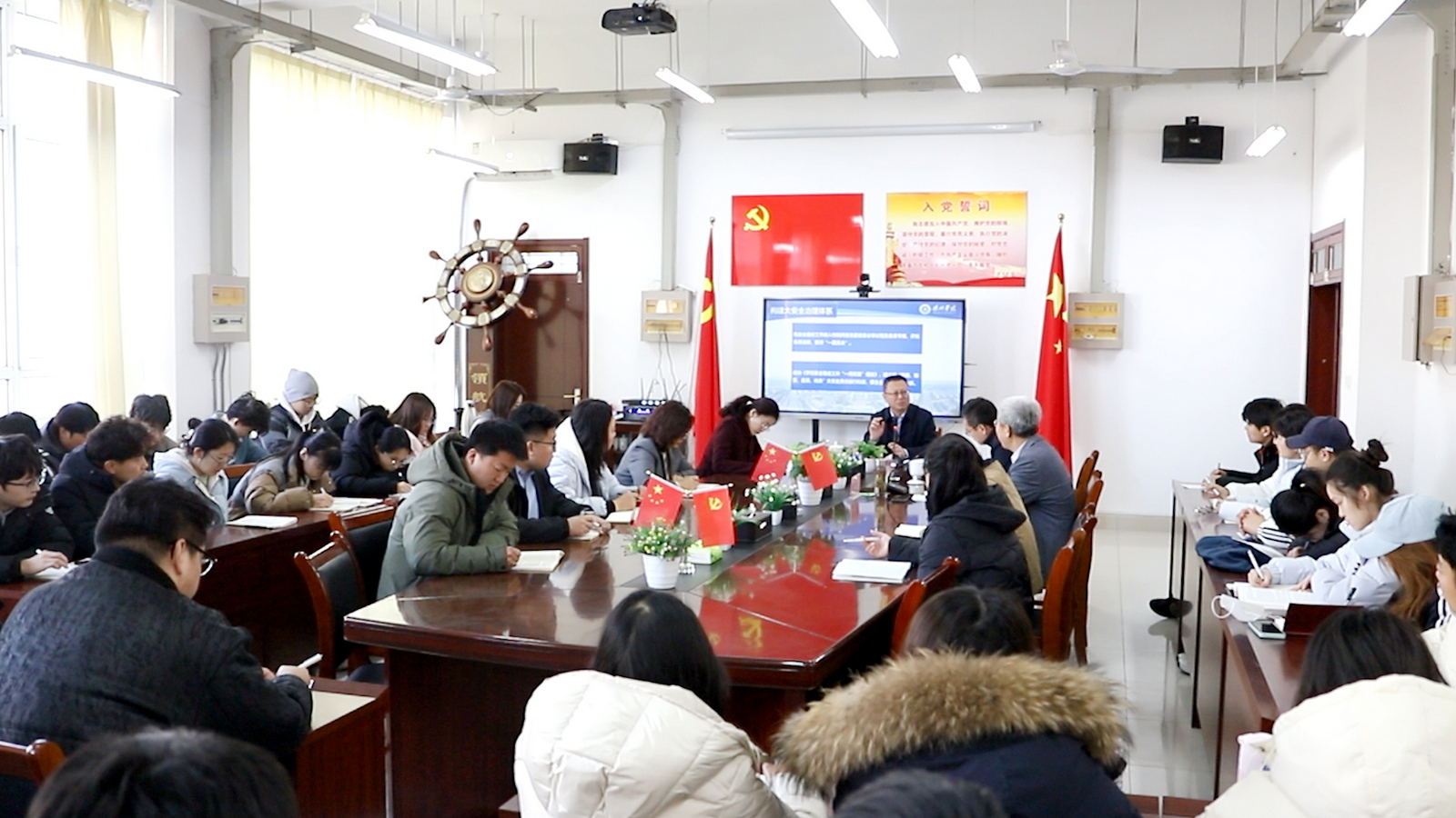 学生工作处主要负责人,能源与机械学院全体班子成员和师生代表聆听授课。