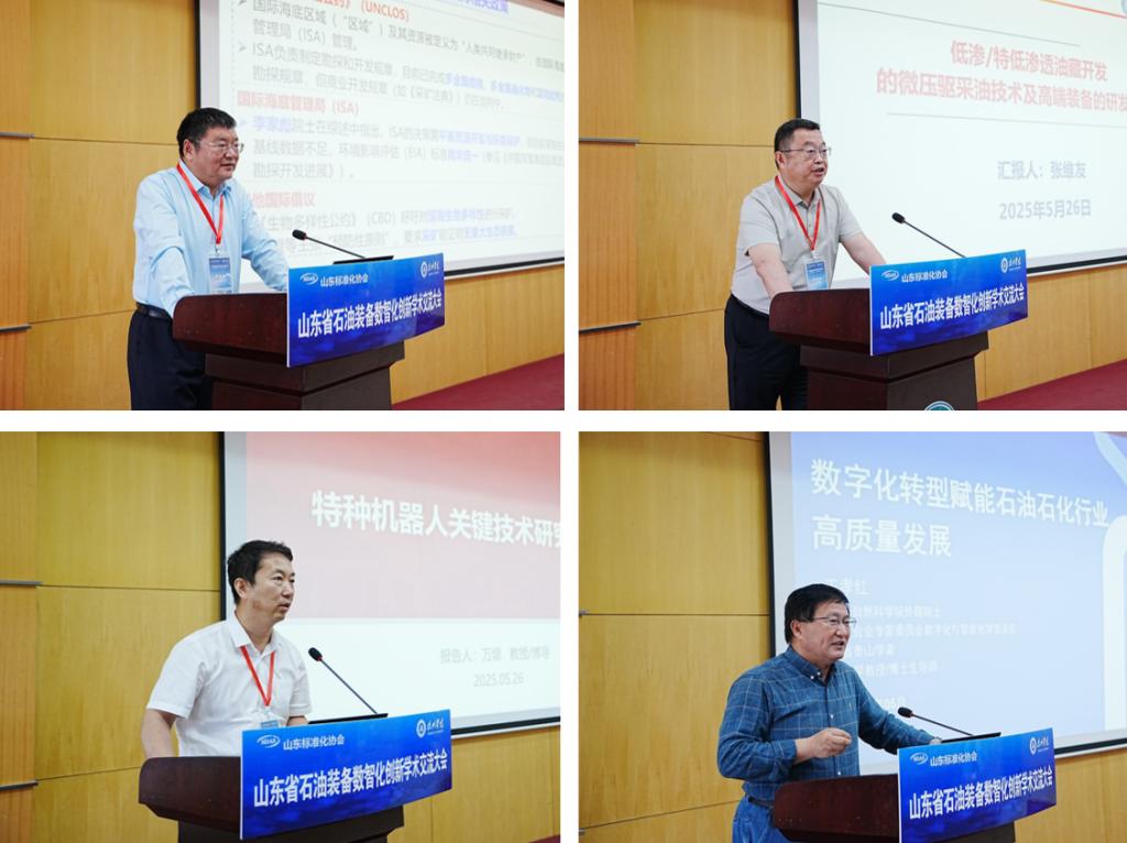 在第二十五个全国科技活动周、第九个全国科技工作者日之际,5月26日,由Beat365唯一官方网站、山东标准化协会与德州市科协联合承办的山东省石油装备数智化创新学术交流大会在Beat365唯一官方网站举办。浙江大学谭建荣教授、山东大学刘延俊教授、济南大学王孝红教授等数智化装备领域知名专家出席会议并作主旨报告,党委委员、副校长李甲亮出席会议并致辞。山东标准化协会秘书长赵中涛主持会议。
