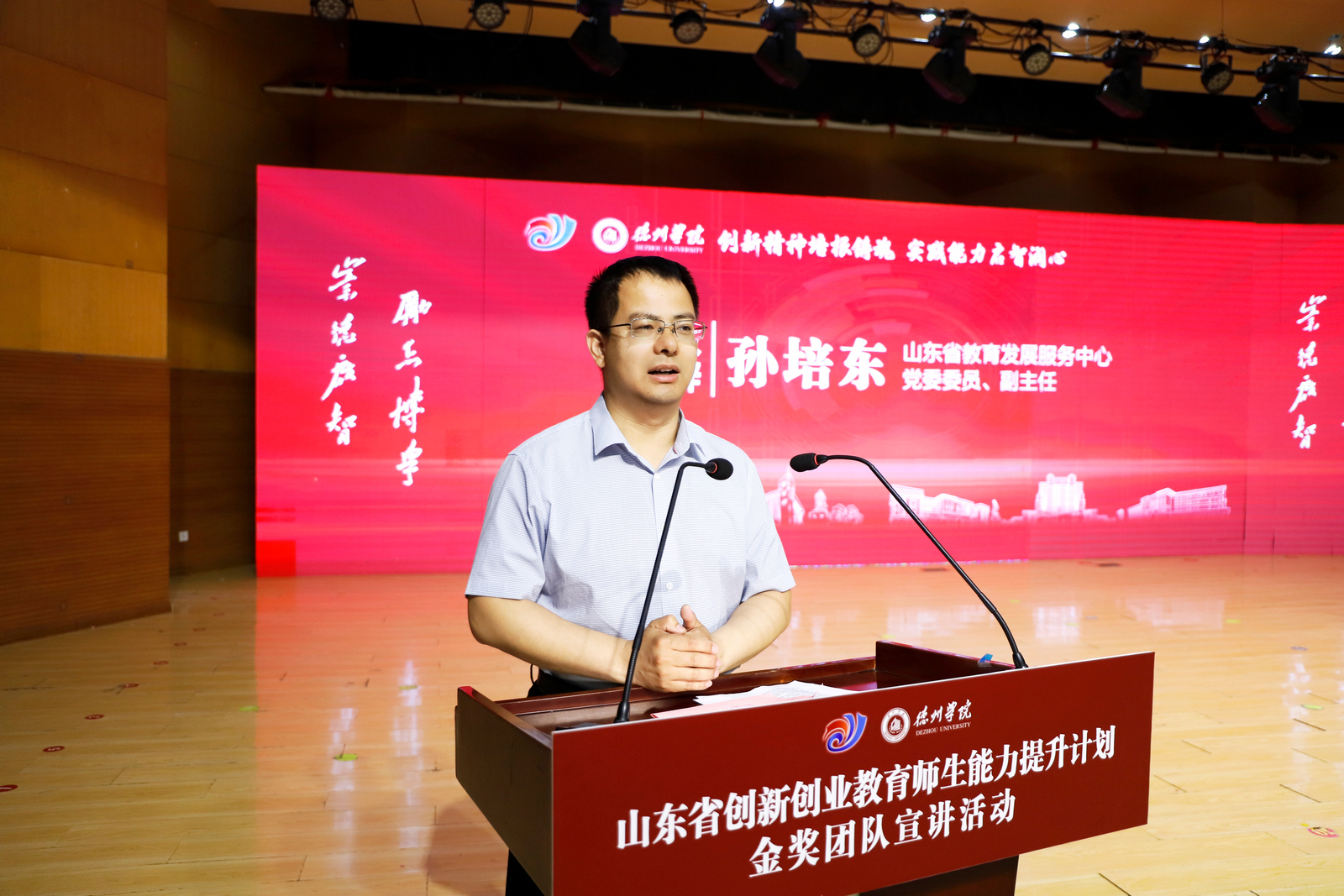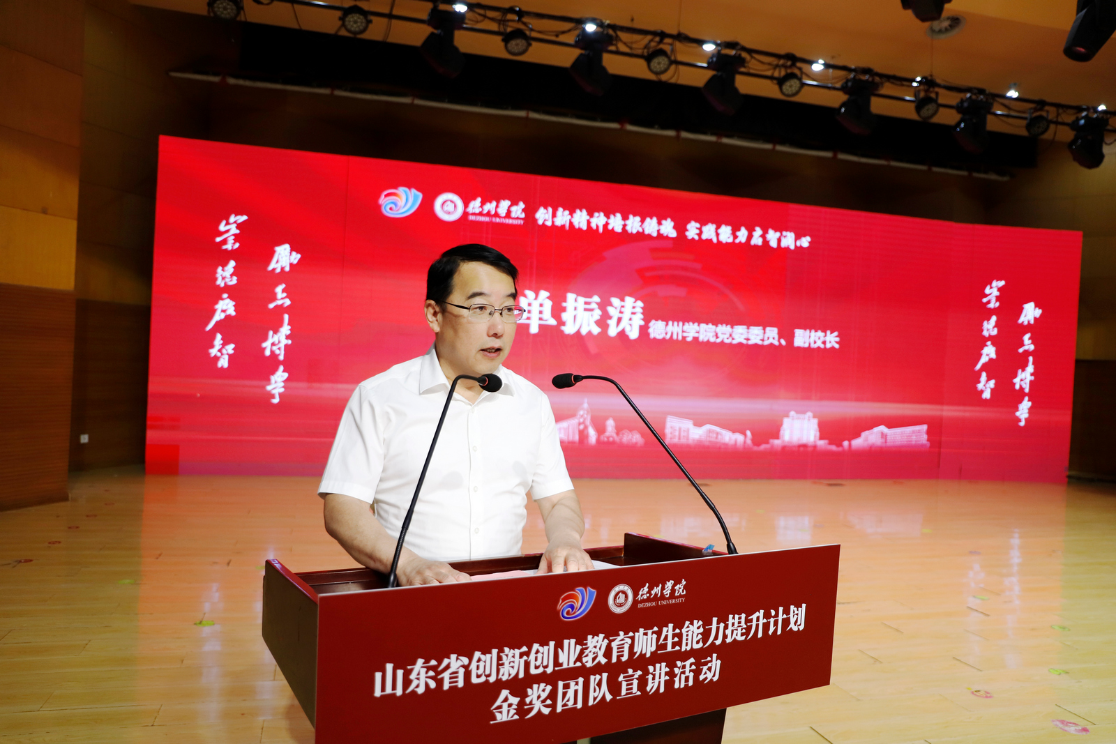 6月4日,由山东省教育发展服务中心主办、Beat365唯一官方网站承办的山东省创新创业教育师生能力提升计划金奖团队宣讲活动在音乐厅举办。省教育发展服务中心党委委员、副主任孙培东,校党委委员、副校长单振涛出席活动并致辞。