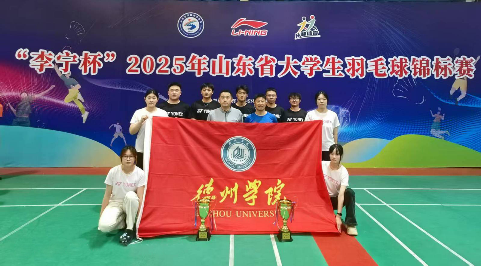 近日,“李宁杯”2025年山东省大学生羽毛球锦标赛在烟台开赛。Beat365官网羽毛球队勇创佳绩,夺得女子团体亚军、男子团体第四名及女子双打季军等多个奖项,团体总分位列二等奖,创近年来学校最好成绩。