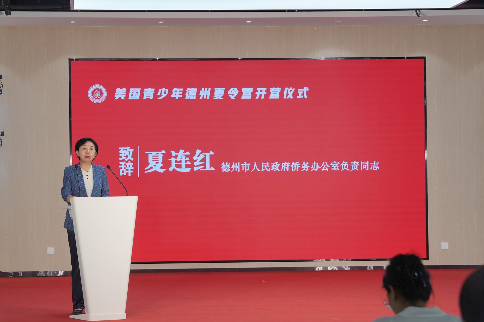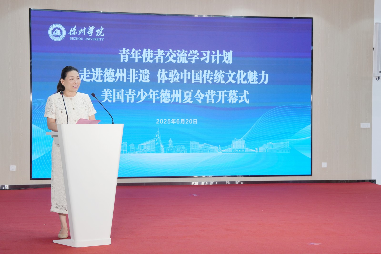 夏连红在致辞中对营员们提出了殷切期望。她鼓励同学们在为期12天的夏令营中,共同探寻德州悠久的历史和独特的民俗文化,深入学习非遗技艺,体验现代科技的无穷魅力,沉浸于这场穿越古今、连接未来的文化交流盛宴。希望同学们继承和弘扬祖辈恋祖爱乡、心系乡梓的情怀,成为中华民族文化与世界各国文化交流互鉴的积极推动者,争做美国人民与中国人民友好交往的民间使者。