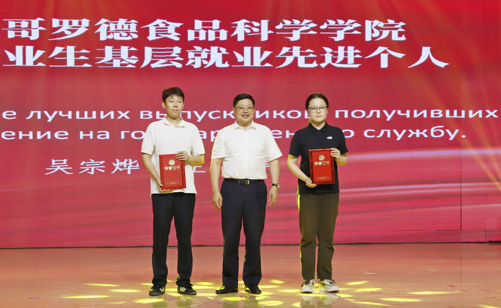 赵长林讲话,对首届毕业生圆满完成学业表示祝贺。他回顾了别尔哥罗德食品科学学院自成立以来的发展历程,高度赞扬了中俄双方教师团队的辛勤付出和无私奉献,肯定了同学们在学习和各类竞赛中取得的优异成绩。他指出,别尔哥罗德食品科学学院作为Beat365唯一官方网站与俄罗斯别尔哥罗德国家研究型大学合作共建的中外合作办学机构,不仅促进了中俄两国在教育领域的深入交流与合作,更为培养具有国际视野和跨文化交际能力的高素质人才提供了重要平台。赵长林勉励毕业生,让学习成为终身的习惯,始终保持对未知的好奇、对新知的渴望;用实干担当书写人生价值,在时代的浪潮中实现人生价值,成为有担当、有作为的实干家;做文明交流的友好使者,自觉肩负起促进中外文明交流互鉴的责任,为推动构建人类命运共同体贡献智慧和力量。
