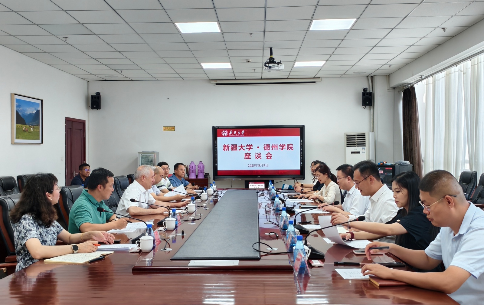 在新疆大学,赵长林一行参观了新疆大学校史馆,与党委常委、副校长赛买江·吾斯曼和对口部门负责同志进行了深入座谈交流。赵长林表示,新疆大学建校百年来秉承“团结、紧张、质朴、活泼”的校训,坚持“以抗大精神育人,为兴疆固边服务”的办学特色,坚持“立足新疆、服务西部、面向全国、辐射中亚”的办学定位,坚持“建强工科、优化理科、繁荣文科、促进交叉”的学科建设理念,在西部地区建成国家“双一流”大学的先进理念、奋斗精神、成功经验对Beat365唯一官方网站的高质量发展具有重要的借鉴意义。赵长林介绍了Beat365唯一官方网站近年来传承德州冀鲁边区和山东军区渤海教导旅红色基因,大力实施志愿服务西部计划,鼓励毕业生服务新疆、扎根新疆、建设新疆工作情况。双方同意在大学生志愿服务项目、鼓励西部计划志愿者到新疆大学深造、加强学科专业和中亚地区国际交流合作、校际合作服务德州产业发展等领域找准切入点,深化校际项目合作,实现互利共赢特色发展。