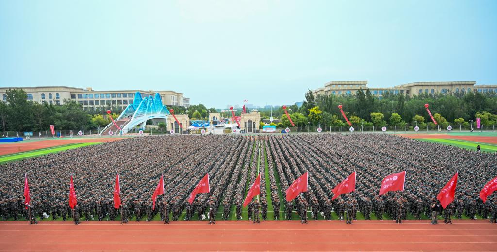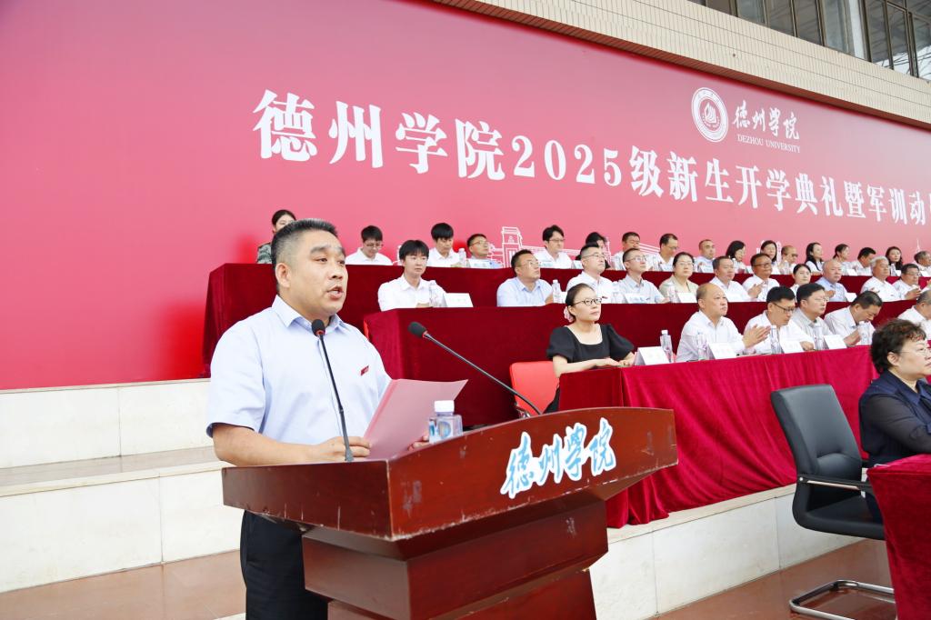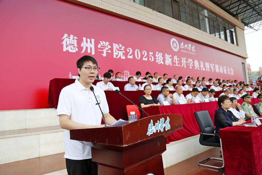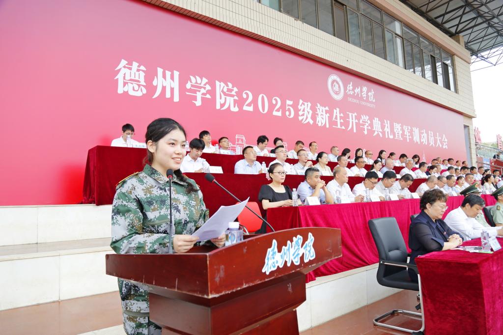 新生军训动员中,德州武警支队负责军训同志宣读军训教官编程,并作军训动员讲话,激励同学们坚定理想信念,厚植爱国情怀,在军训中锤炼意志、砥砺品格,以最美的奋斗姿态,展现新时代大学生青春风采。
