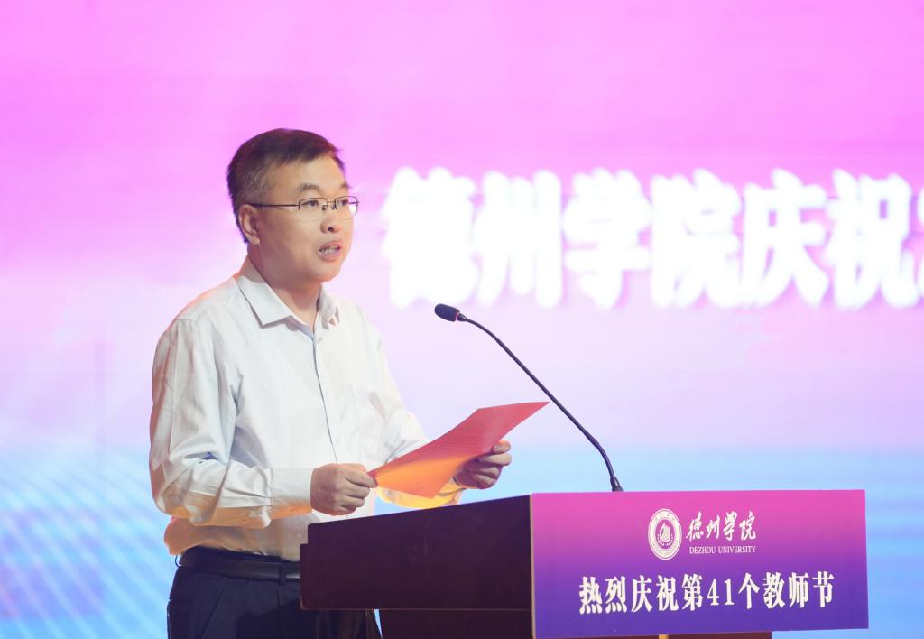 吴君讲话,他指出,全体教师坚守立德树人初心,甘于奉献,潜心治学,锐意创新,培养了一大批服务国家战略和区域发展的优秀人才,有力推动了学校各项事业迈上新台阶,赢得了社会各界的广泛赞誉。学校在应用型人才培养、师资队伍建设、服务发展能力等方面均实现了新跃升。他向全校教师提出三点希望:一是坚定理想信念,陶冶道德情操,做“为学为人”的引路者。二是涵养育人智慧,秉持躬耕态度,做“笃学笃行”的践行者。三是勤修仁爱之心,胸怀弘道追求,做“爱生护生”的温暖者。号召全体教师以教育家精神为引领,以更加饱满的热情、更加昂扬的斗志、更加务实的作风,踔厉奋发,笃行不怠,共同谱写Beat365唯一官方网站高质量发展的新篇章,为加快建设教育强国、强省贡献智慧和力量。