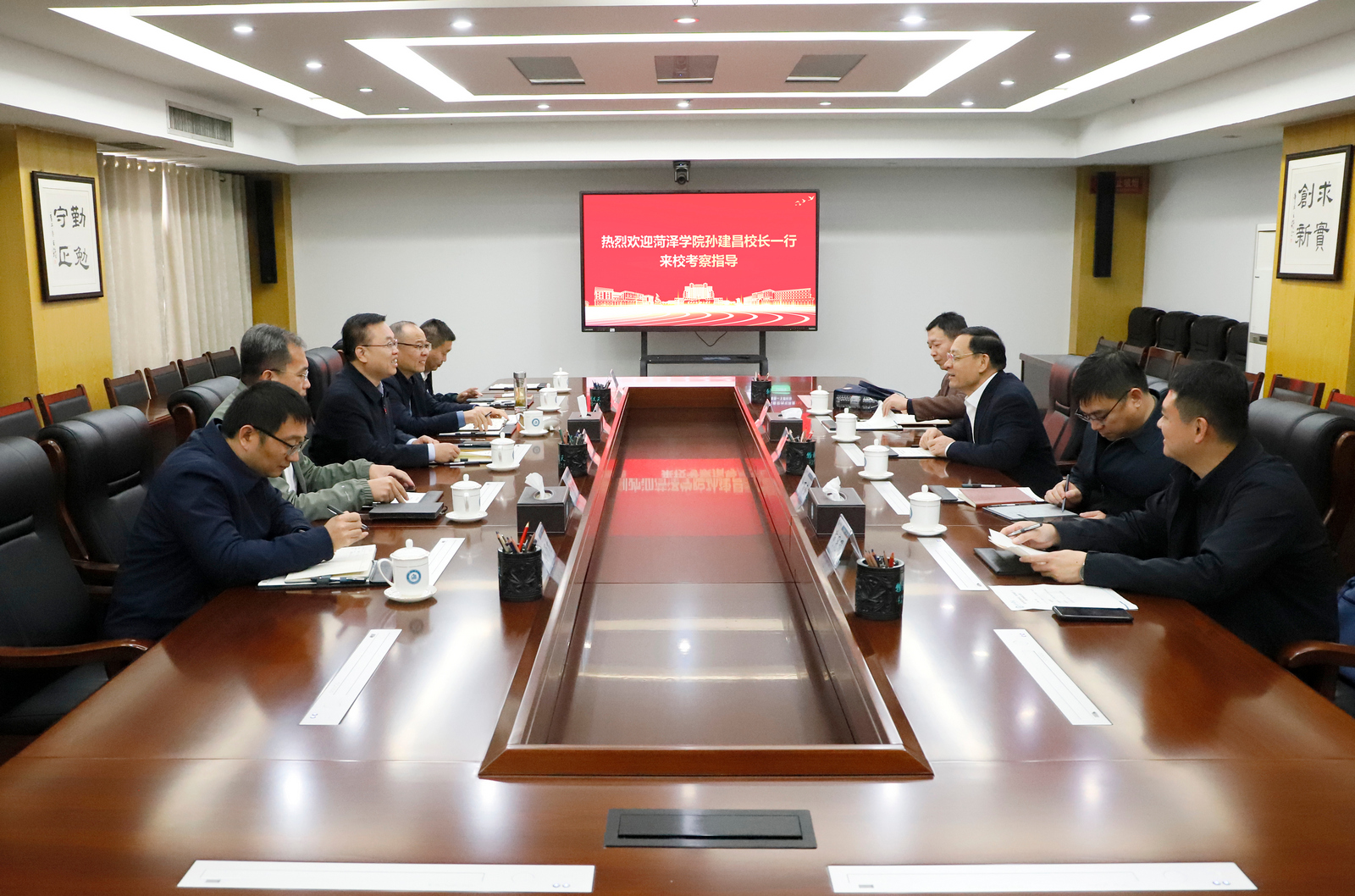 10月30日,菏泽学院党委副书记、校长孙建昌一行4人来校考察交流。Beat365官网党委书记吴君,党委副书记、校长赵长林在学校八楼会客室热情会见孙建昌一行,双方就深化校际合作、共享发展经验等方面进行了友好会谈。