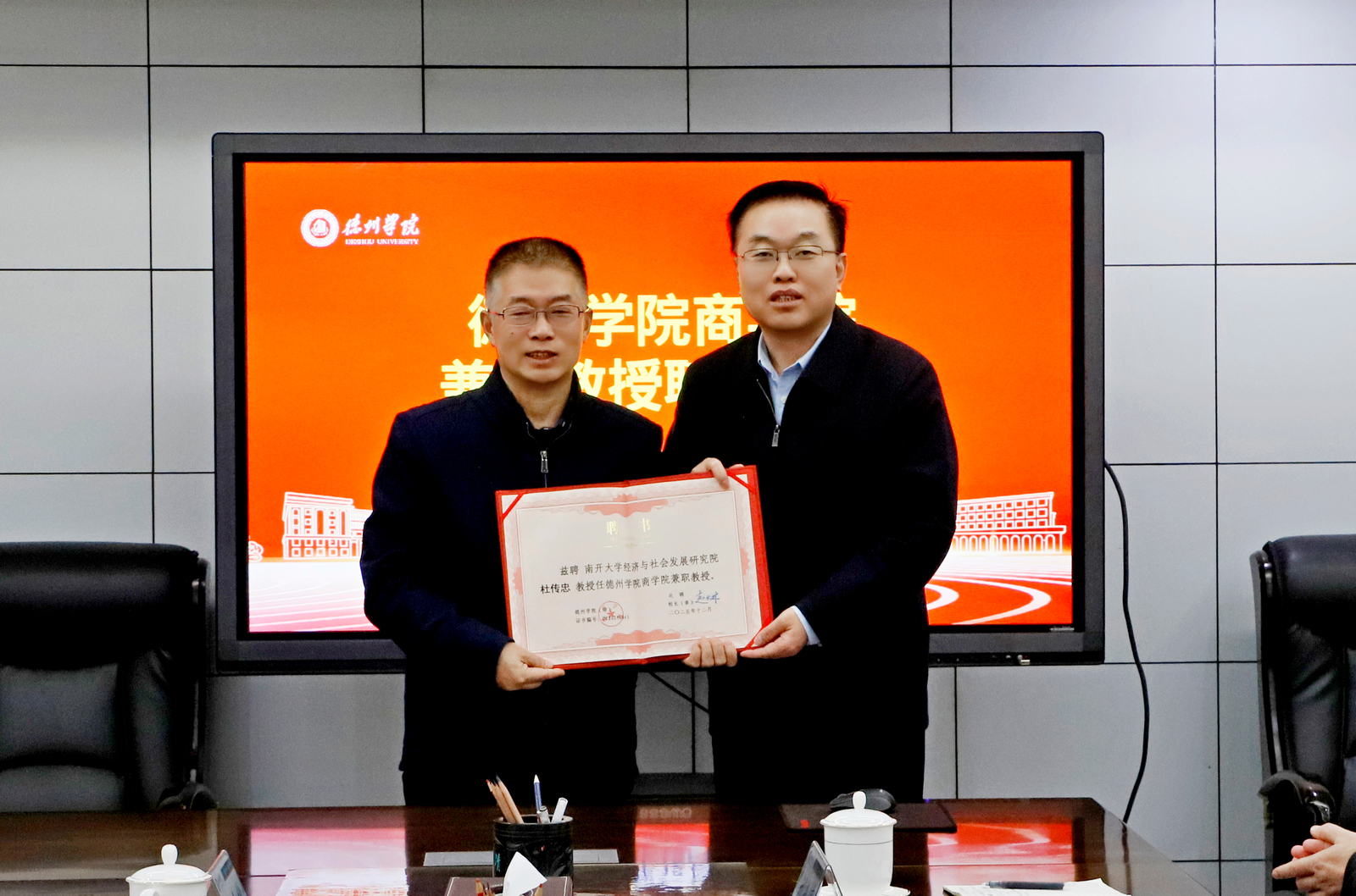 12月9日,学校举行仪式聘任南开大学经济与社会发展研究院博士生导师、产业经济研究所所长杜传忠教授为兼职教授。党委副书记、校长赵长林出席活动并为杜传忠颁发聘书。人事处、商学院负责人参加聘任仪式。