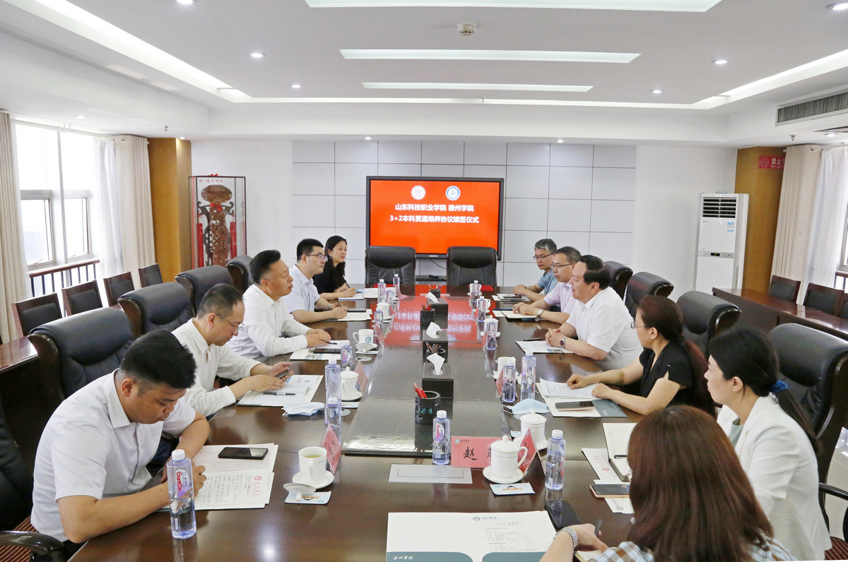 6月17日,山东科技职业学院党委书记郑德前一行5人来校考察交流续签人才培养协议。党委书记车滨、副校长徐静出席签约仪式,仪式由徐静主持。