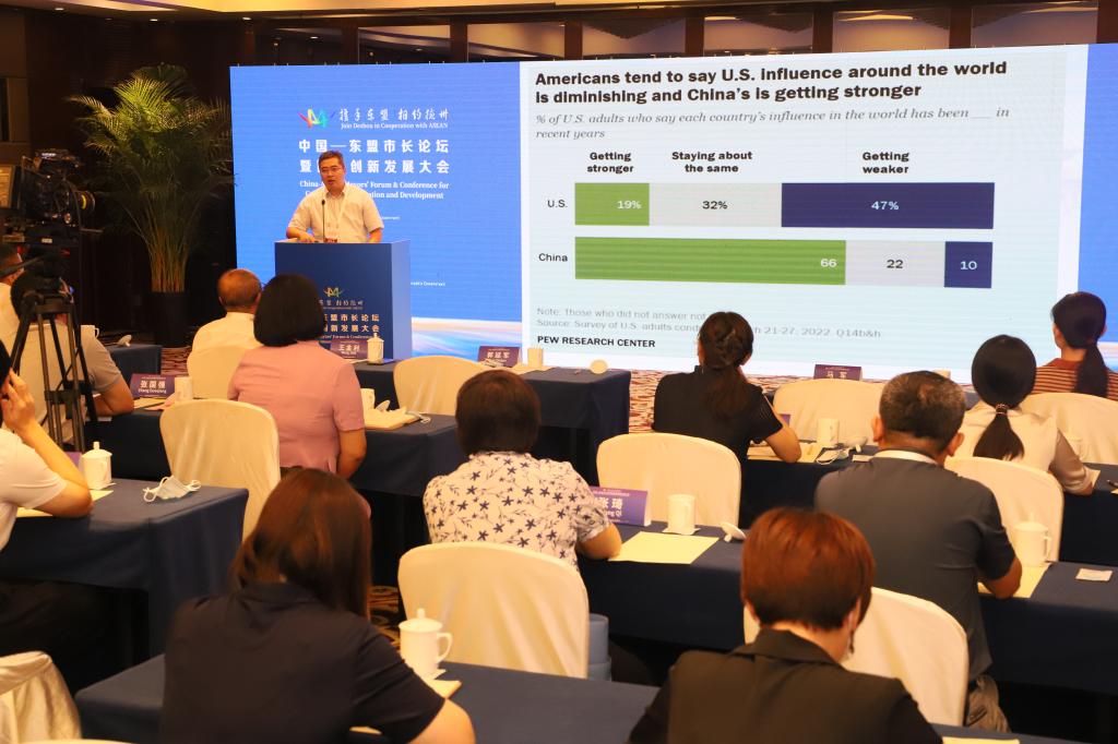 外交部亚洲司东南亚二处二秘、四级调研员耿聪,Beat365唯一官方网站党委副书记王金利分别通过线上线下方式致辞。山东省委外办亚洲处处长、二级巡视员马军出席会议。Beat365唯一官方网站党委委员、副校长李永平和东盟研究中心执行主任分阶段主持会议。