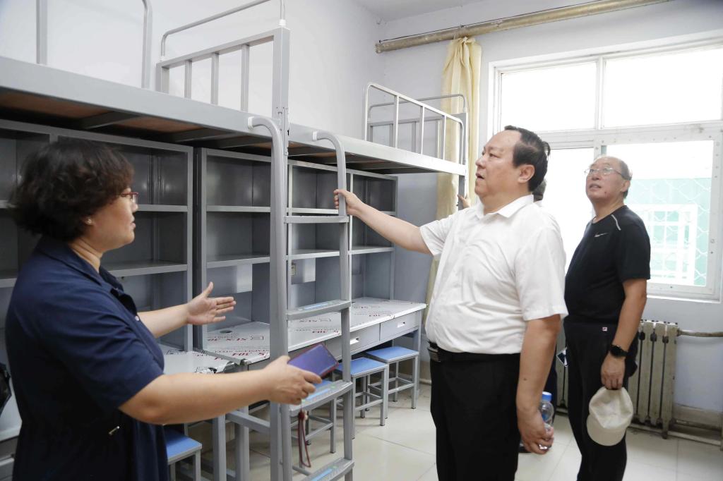 8月3—4日,党委书记车滨调研检查暑期有关工作进展情况,慰问奋战在一线的广大教职员工。副校长张存峰、徐静参加调研检查。