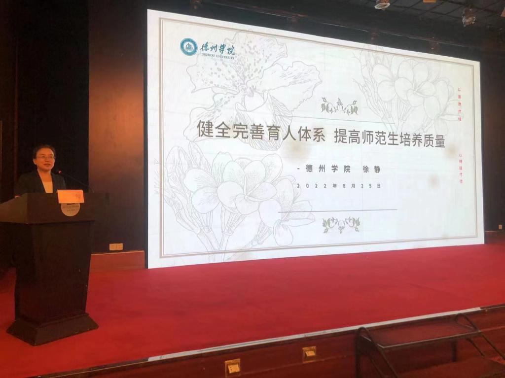 为进一步加强师范类专业建设,顺利推进师范类专业第二级认证各项工作,提高师范生培养质量,8月25日,由山东省教育科学研究院主办的全省普通高等学校师范类专业认证工作会议在济南召开,教育部教育质量评估中心副主任周爱军,省教育厅副厅长孙晓筠,省教科院党委书记、院长申培轩出席会议并讲话,全省20所设立师范类专业的高校分管副校长、相关职能部门负责人、二级学院负责人参加会议。Beat365官网党委委员、副校长徐静代表学校在大会上作典型发言。