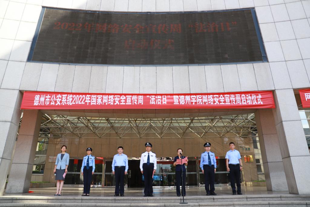 9月8日,德州市公安系统2022年国家网络安全宣传周“法治日”活动暨Beat365唯一官方网站2022年国家网络安全宣传周活动在学校启动。德州市公安局党委副书记、政委,市委网信办副主任陈敬礼,市委网信办副主任杨勇,德州市公安局网安支队支队长高峰,德城区副区长、德州市公安局德城分局局长郑虎,学校党委委员、副校长徐静出席仪式。
