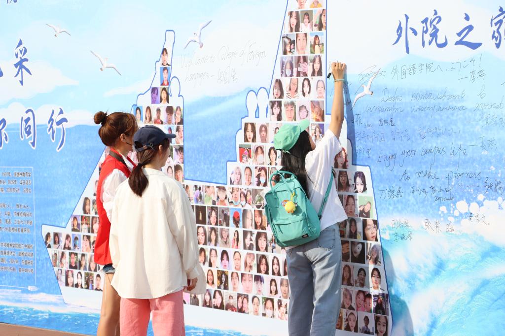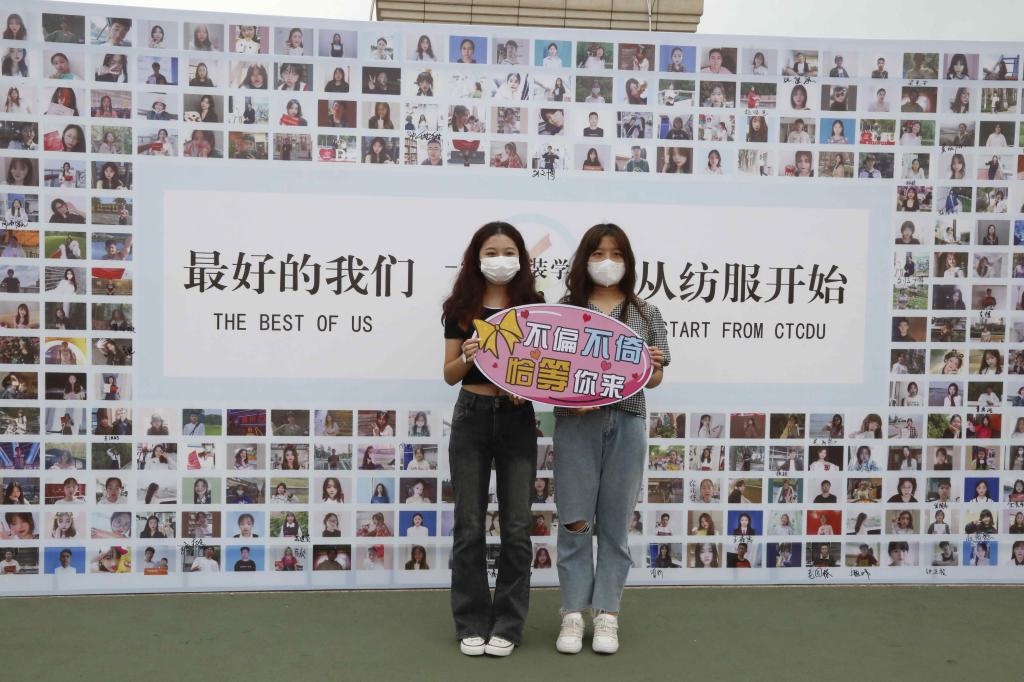 纺织与服装学院、外国语学院别出心裁地用所有新生照片组成笑脸墙,希望小萌新们在德院幸福每一天。
