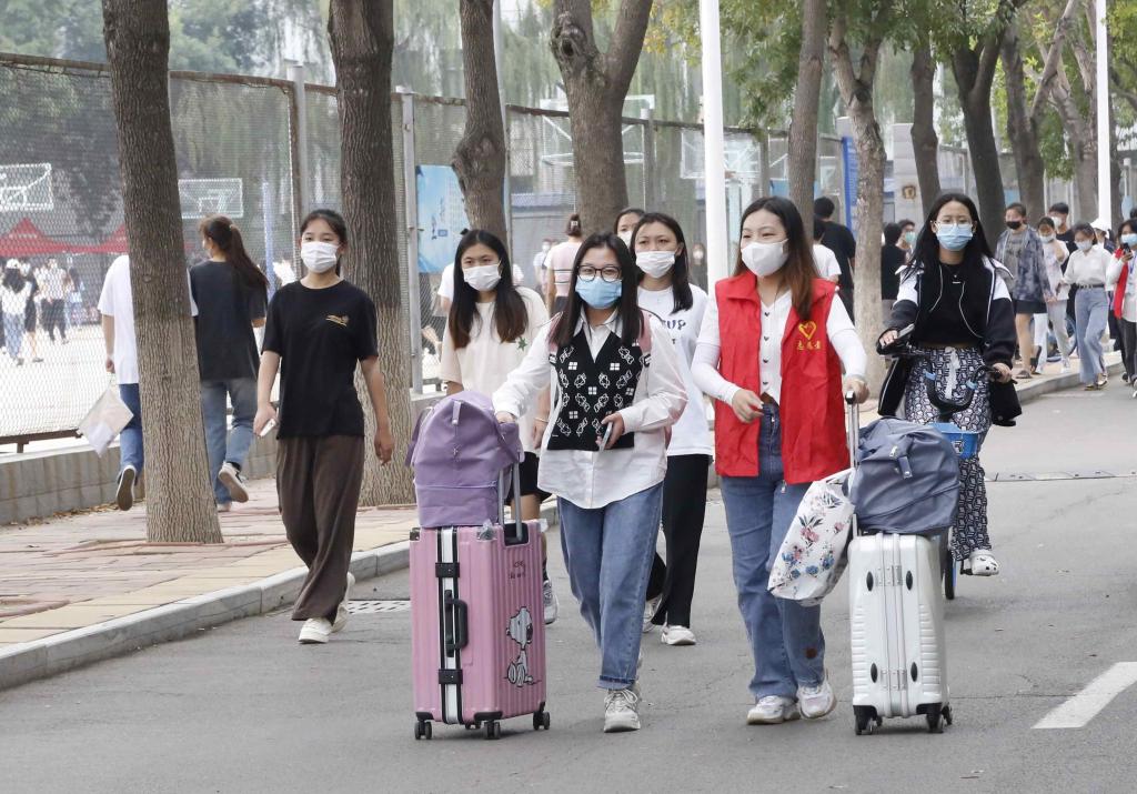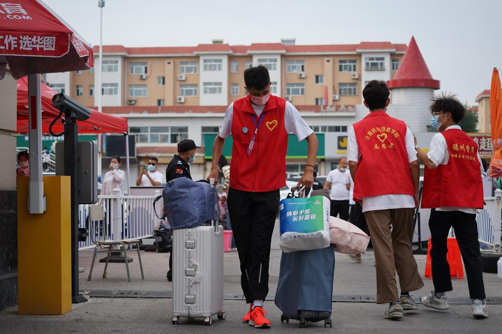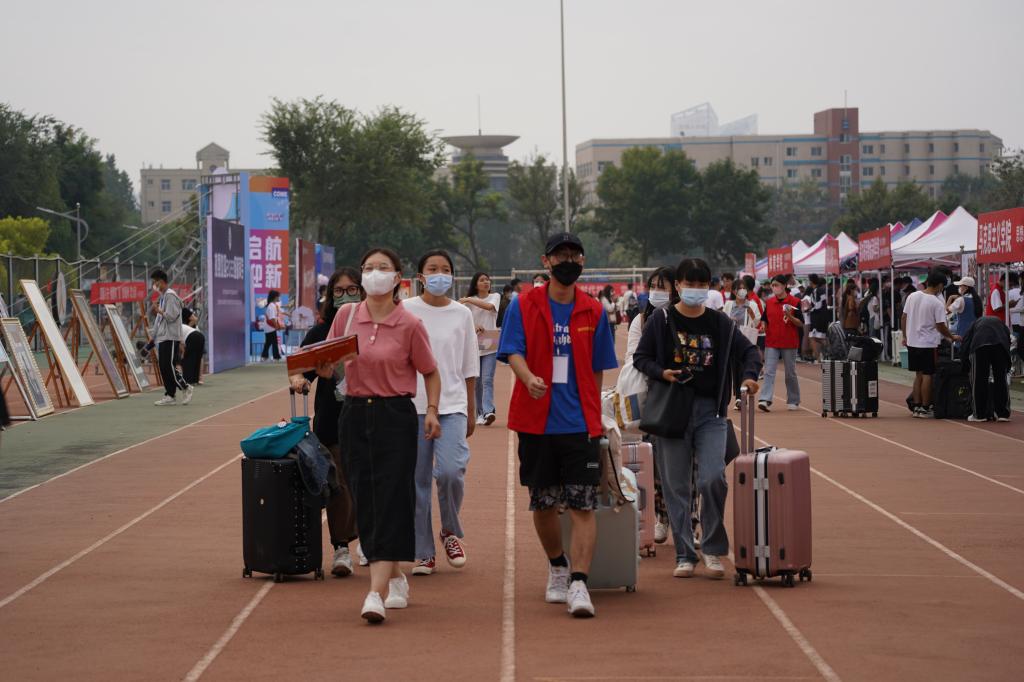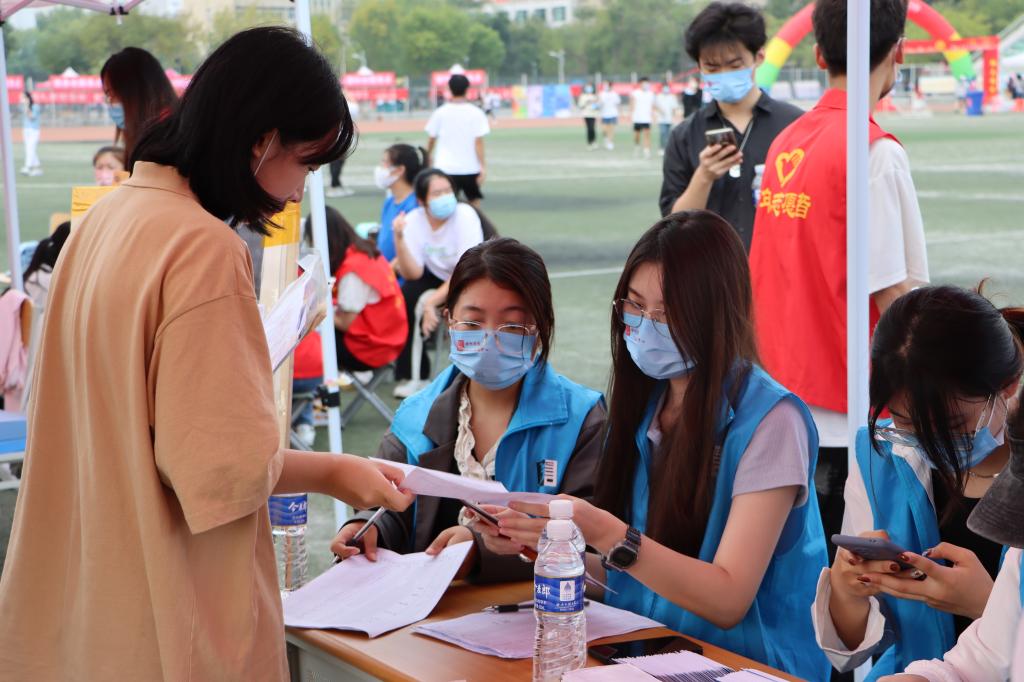 数百名身穿红马甲的学生志愿者为新生提供报到、引导等服务,成为校园一道独特的风景线。