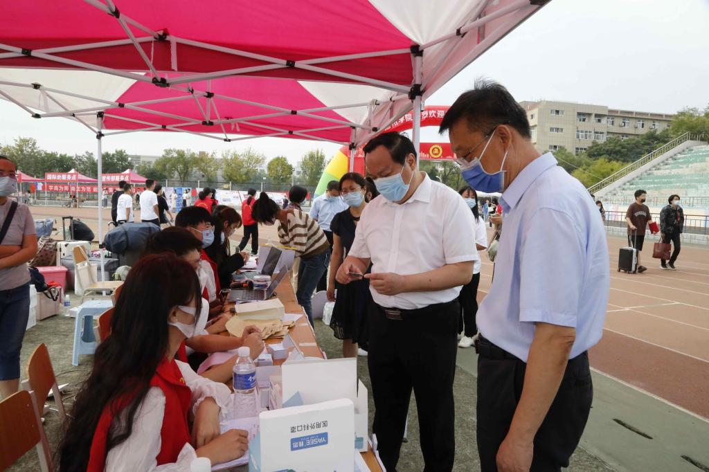 学校高度重视迎新工作。校领导深入现场指导迎新工作,慰问承担迎新工作的师生员工,与新生进行亲切交谈。