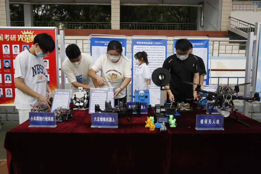 物理与电子信息学院、计算机与信息学院等学院直接将实验室搬到了现场,展示了六足蜘蛛机器人等作品……
