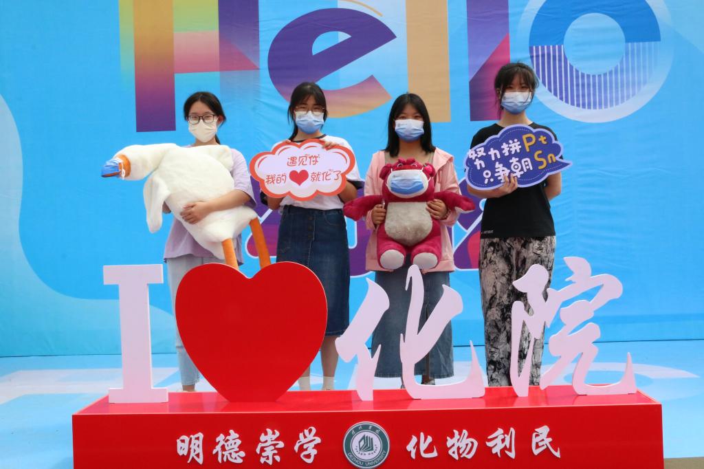 在化学化工学院,新生可以参加学长们为他们准备的化学“游乐场”小游戏,通过闯关游戏可以获得水杯、笔记本、玩偶等礼物,通过这种小游戏能够快速让新生融入学院集体,让她们感受到大家庭的温暖。