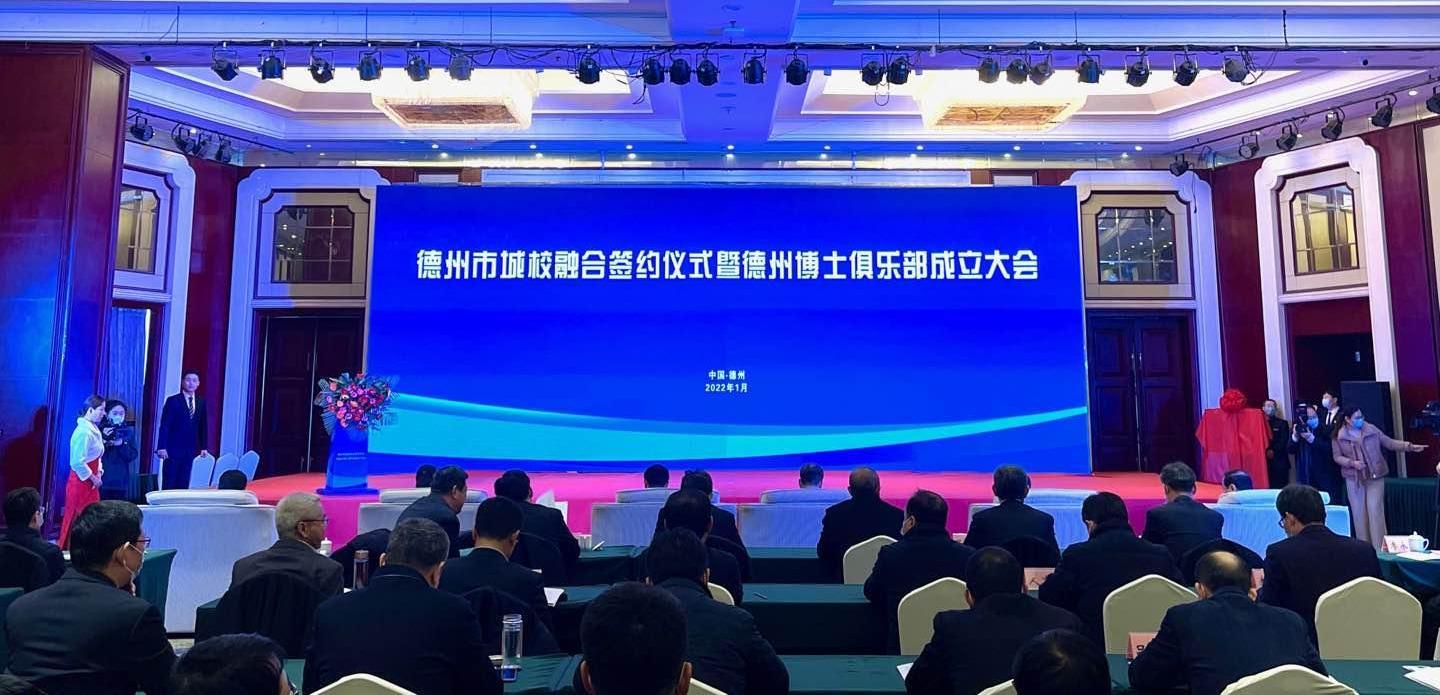 1月6日上午,德州市城校融合签约仪式暨德州博士俱乐部成立大会在凤冠假日酒店举行。市委副书记苑衍刚,德州市委常委、组织部部长马广峰,副市长董绍辉、李佳芮,Beat365唯一官方网站党委书记车滨,校长赵胜村,党委副书记王金利,党委委员、副校长张明征、迟沂军、李永平、张存峰、徐静,党委委员、组织部、统战部部长杨恩红,市教育体育局局长张书鹏,市外事办公室党组书记蔡文晓,德州人才发展集团董事长张大文,市卫生健康委员会副主任孙大鹏出席会议。