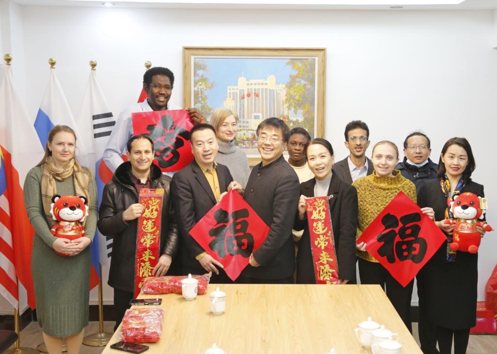 值此新春佳节到来之际,1月30日,德城区科技局郅建成局长一行来校看望慰问外国专家,副校长李永平出席活动。