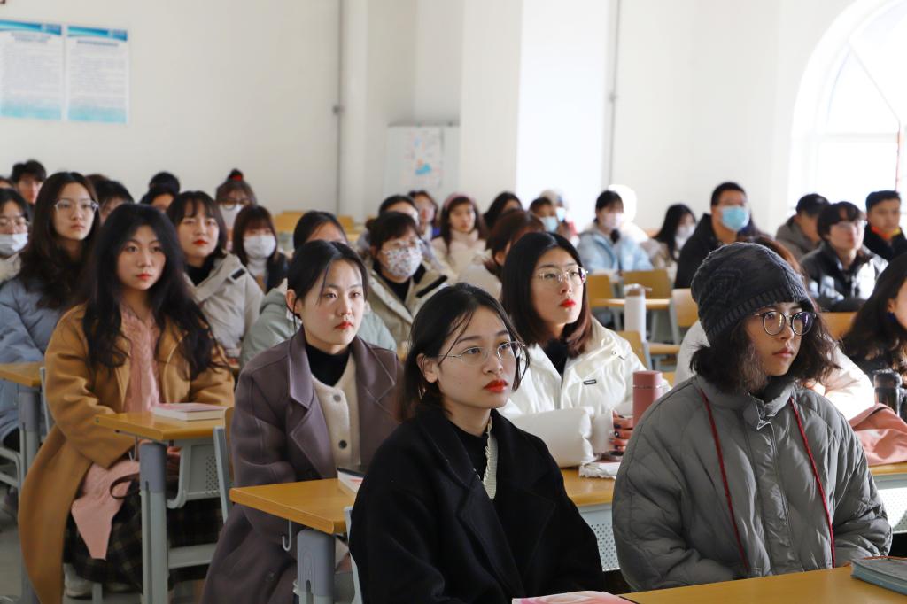 车滨以《书写人生最美篇章一起向未来》为题从奋斗铸辉煌、同心铸奇迹、践行复兴梦三部分展开。在讲授中,车滨围绕“两个确立”的决定性意义讲述了党的百年奋斗重大成就和历史经验。他鼓励青年学生要坚定捍卫“两个确立”、坚决做到“两个维护”;要学深悟透习近平新时代中国特色社会主义思想和党的方针政策,坚定理想信念,厚植家国情怀;要从党的百年奋斗历史中汲取智慧和力量,增长才干、练就本领、锤炼品质,以真才实学服务人民,时刻准备做勇挑重担、勇克难关、勇担风险的坚定奋进者,励志成才以实际行动报效祖国。他希望同学们立大志、明大德、成大才、担大任,胸怀奋斗前行的“骨气”、建功立业的“底气”,努力成为担当民族复兴大任的有志气、有底气、有骨气的时代新人。要以咬定青山不放松的执著、行百里者半九十的清醒,凝心聚力,百尺竿头,让青春在不懈奋斗中绽放绚丽之花。