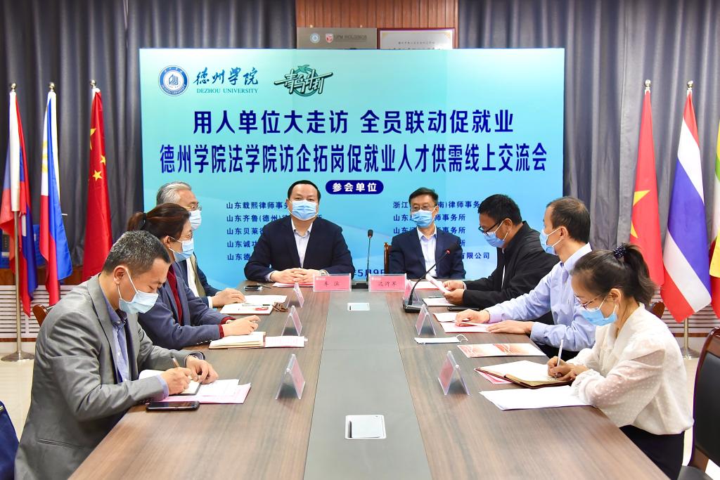 会上,法学院负责人介绍了法学院办学情况,山东载熙律师事务所、山东涵诺律师事务所、山东家硕律师事务所等10家企业代表分别就校企深化合作、人才培养、人才招聘、合作平台构建等工作深入开展交流。随后,各企业分别进行招聘岗位说明,有意向的同学通过线上形式投送简历或与企业进一步进行沟通交流。