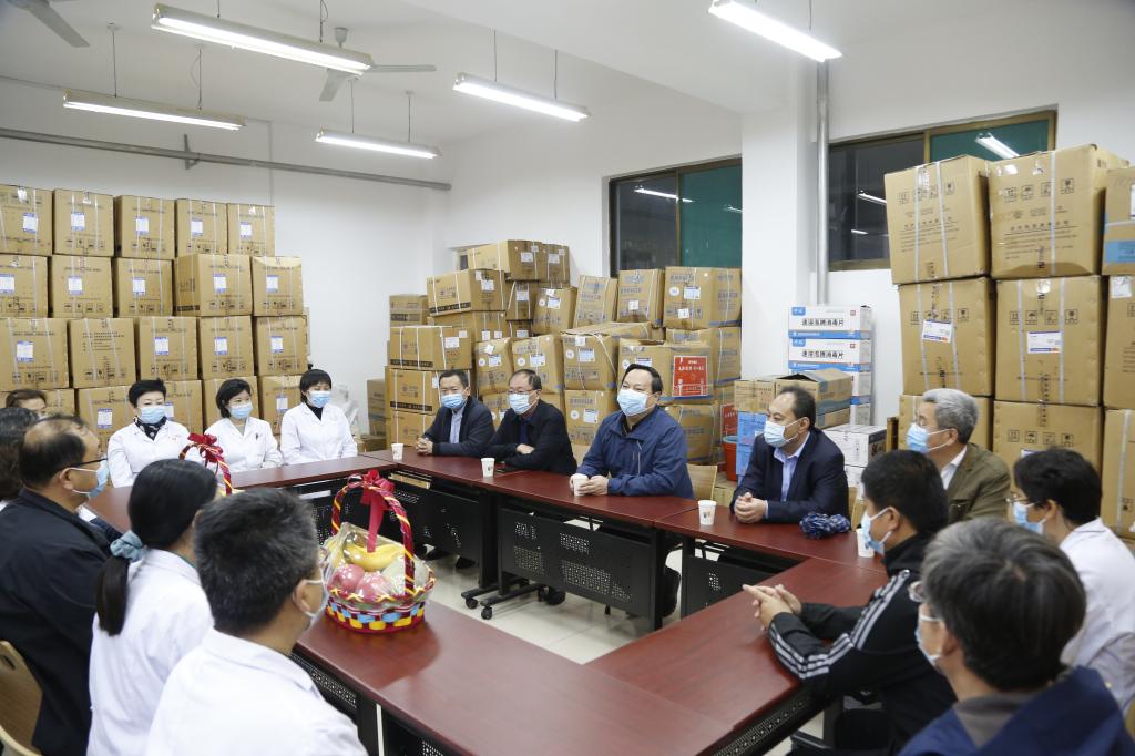 车滨向辛勤工作在医疗、护理岗位上的医务工作者致以节日的问候,对医务中心为师生做好医疗保障表示感谢。他详细询问了医护人员的工作、生活以及身体情况,了解校内医疗服务工作中存在的困难,对全体医护人员坚守岗位、勇担重任的辛勤付出表示感谢。