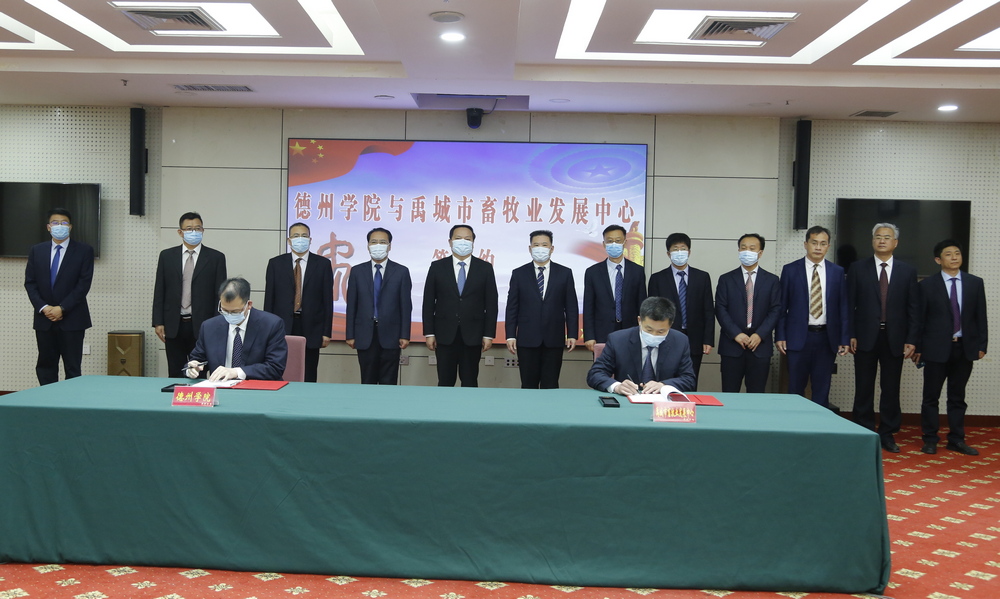 仪式上,学校生命科学学院、医药与护理学院分别与禹城市科学技术局、禹城市畜牧业发展中心签订《Beat365唯一官方网站禹城市共建Beat365唯一官方网站现代生物技术产业学院框架协议》,生物物理研究院与禹城市惠民农业科技有限公司签订《Beat365唯一官方网站禹城市惠民农业科技有限公司战略合作框架协议》。