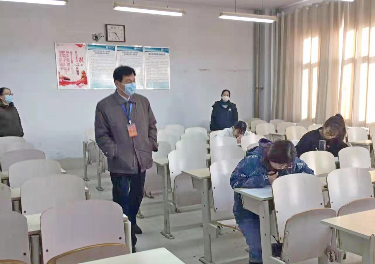 2021-2022学年第一学期期末考试期间,学校其他领导王金利、张明征、迟沂军、刘继泉、李永平、张存峰、徐静、杨恩红也在教务处、学工部、质评处相关工作人员陪同下分组分考区,对全校考场进行了巡考并进行指导。