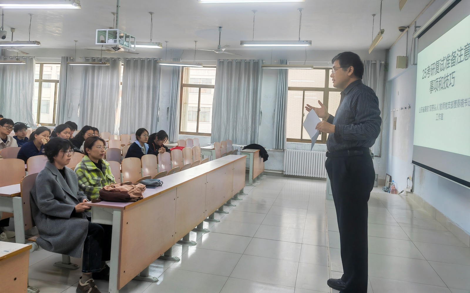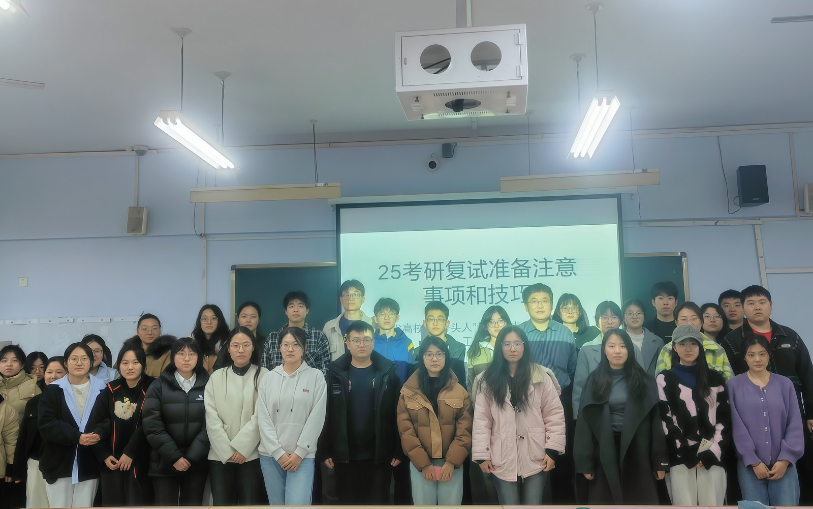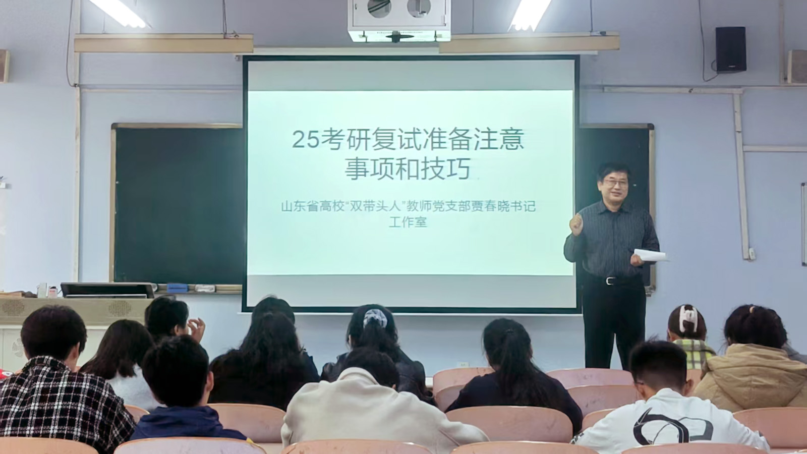 2月24日,2025年考研成绩和国家线同时公布,化学化工学院2021级化学专业考研上线率连续多年超过40%,为了提高学生复试成功率,第二批全省高校“双带头人”教师党支部书记工作室培育创建单位,化学化工学院第一教师党支部贾春晓书记工作室“想学生之所想,急学生之所急”,提前筹划、精心组织,于3月1日下午在求实楼301教室举办了一场题为“25考研复试准备注意事项和技巧”的讲座。