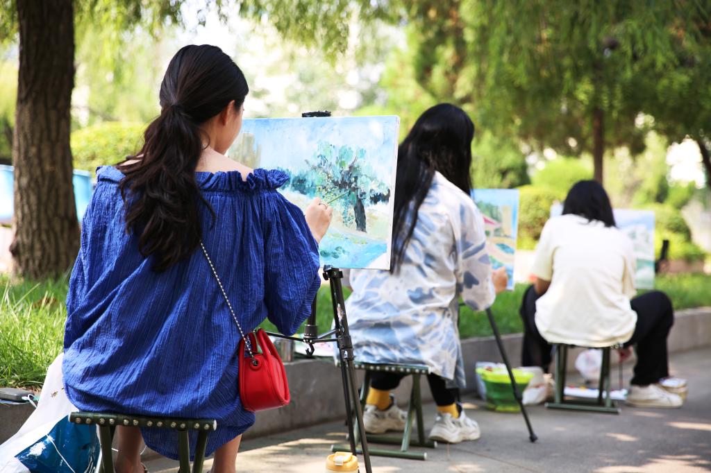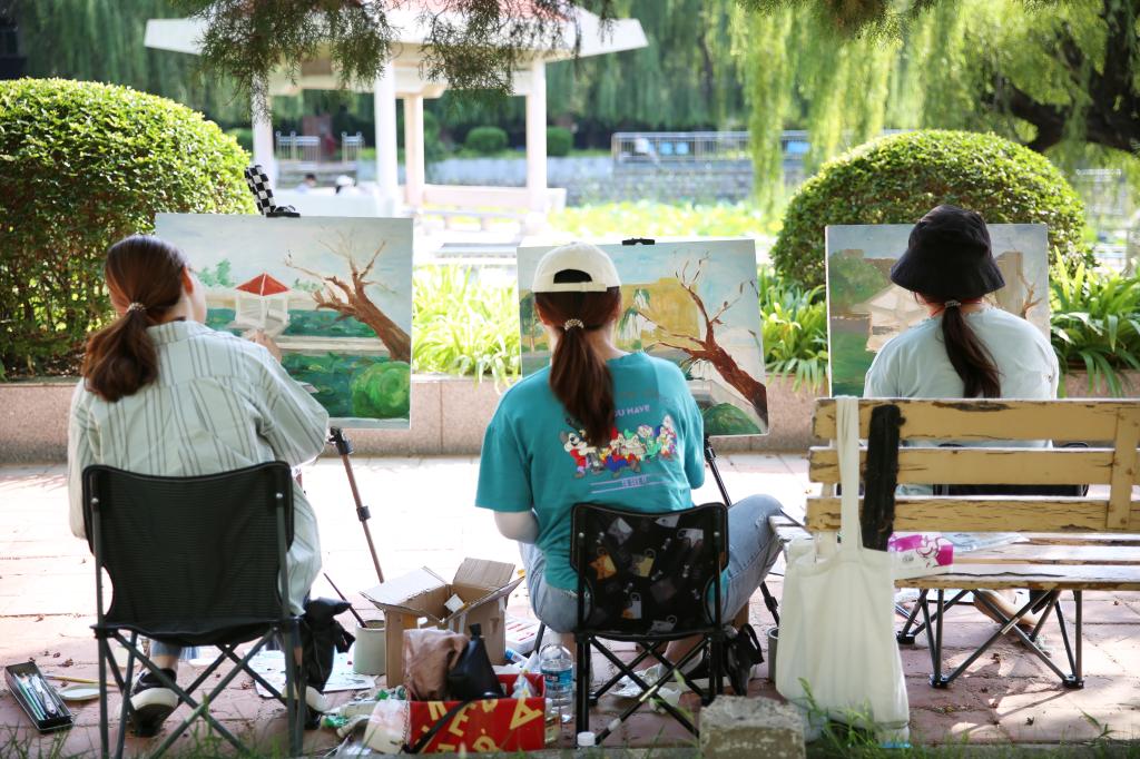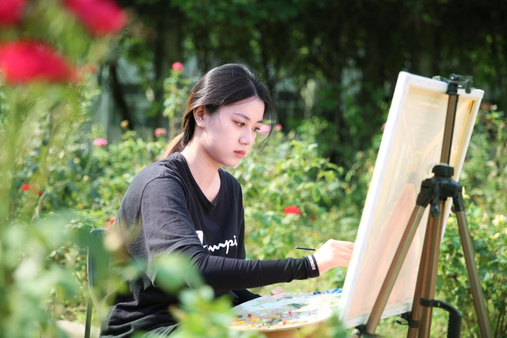 近日,学校各处景点出现了很多拿着画笔认真比划的学子,他们究竟在干什么?让我们一探究竟。