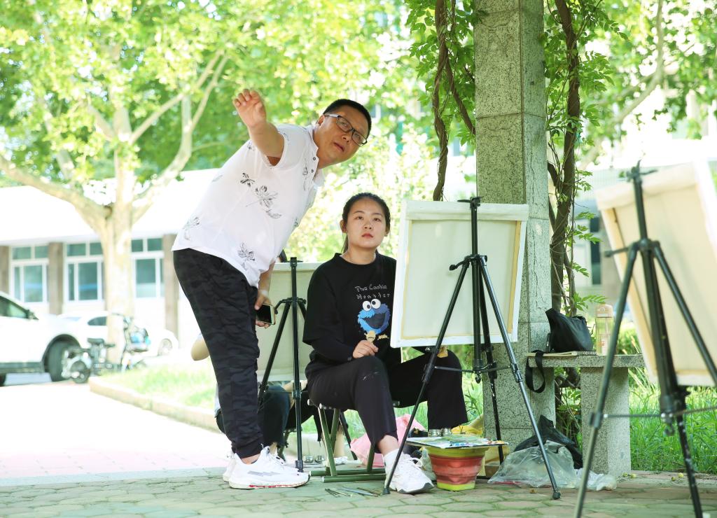 美术学院19级美术学油画专业的同学们,为了画出眼中最美的校园,在校园各个角落用手中的画笔记录着最美的德院校园。同学们精心选择适合的写生角度,用心感受校园的美。任课教师程铁中现场示范教学,从写生角度选取、构图、用笔、调色等进行示范,学生们把对油画风景写生课的浓厚兴致和对学校的美用画笔注入到自己的作品中,沉浸写生的美院学子们也成为德院一道靓丽的风景线。