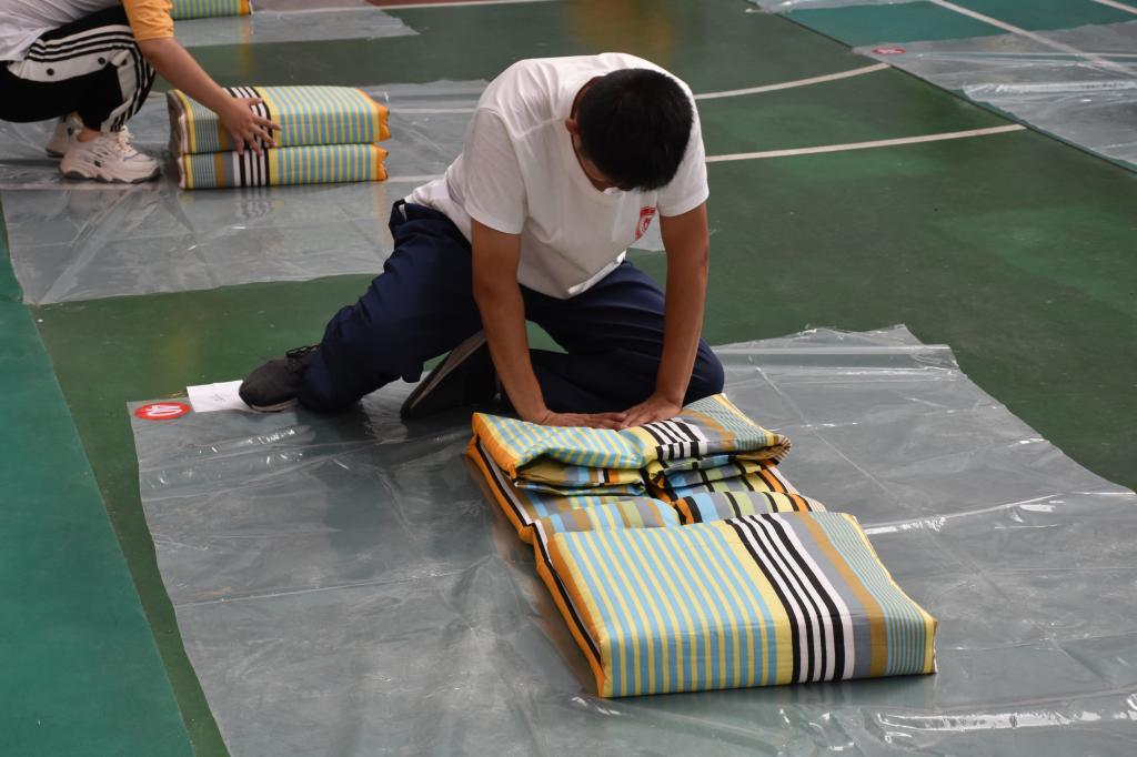 为展现2021级新生的风采,提高学生内务整理水平,培养新型大学生良好的生活习惯,在学校学工部的组织下,9月8日在体育馆举办了一场精彩激烈的叠军被比赛。