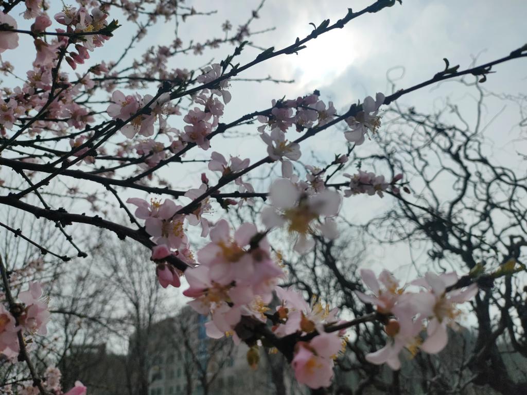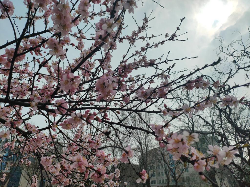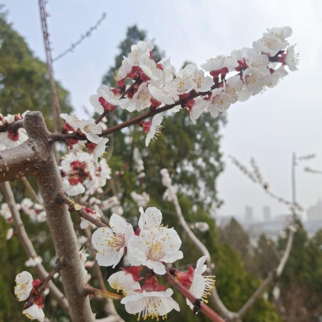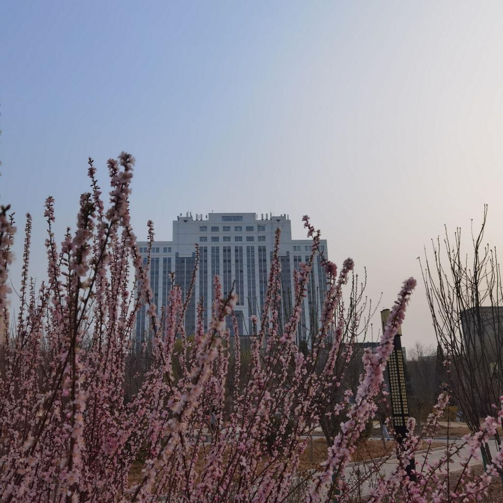 春风送暖,春阳普照,大学生们拿起了手中的相机,记录下一幕幕可爱的春景。迎春花悄然绽放,春梅萌生嫩芽,柳树抽出新枝……校园被美好春光装扮一新,阳光洒过仿古建筑,一步一景,诗情画意,如诗所云:“红入桃花嫩,青归柳叶新。”