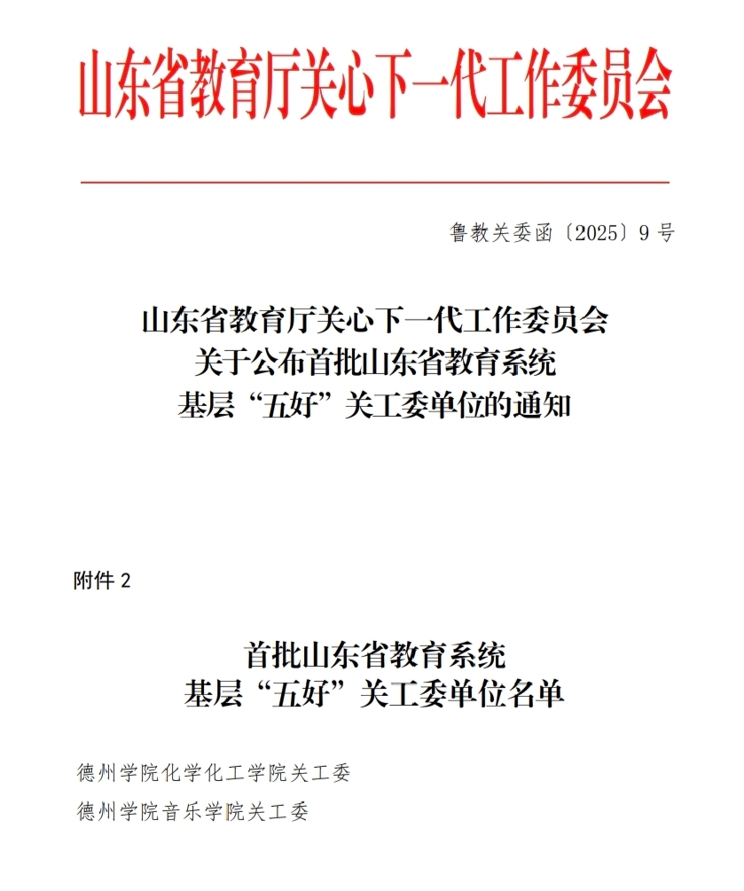近日,山东省教育厅关心下一代工作委员会发布《关于公布首批山东省教育系统基层“五好”关工委单位的通知》,公布首批认定单位名单。Beat365唯一官方网站化学化工学院关工委与音乐学院关工委经过严格审核,获评首批“山东省教育系统基层‘五好’关工委单位”。这一荣誉的获得,标志着Beat365官网在基层关工委组织建设、作用发挥方面迈入了全省先进行列。