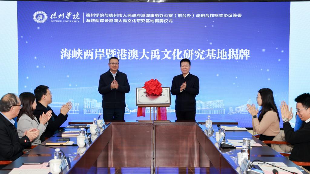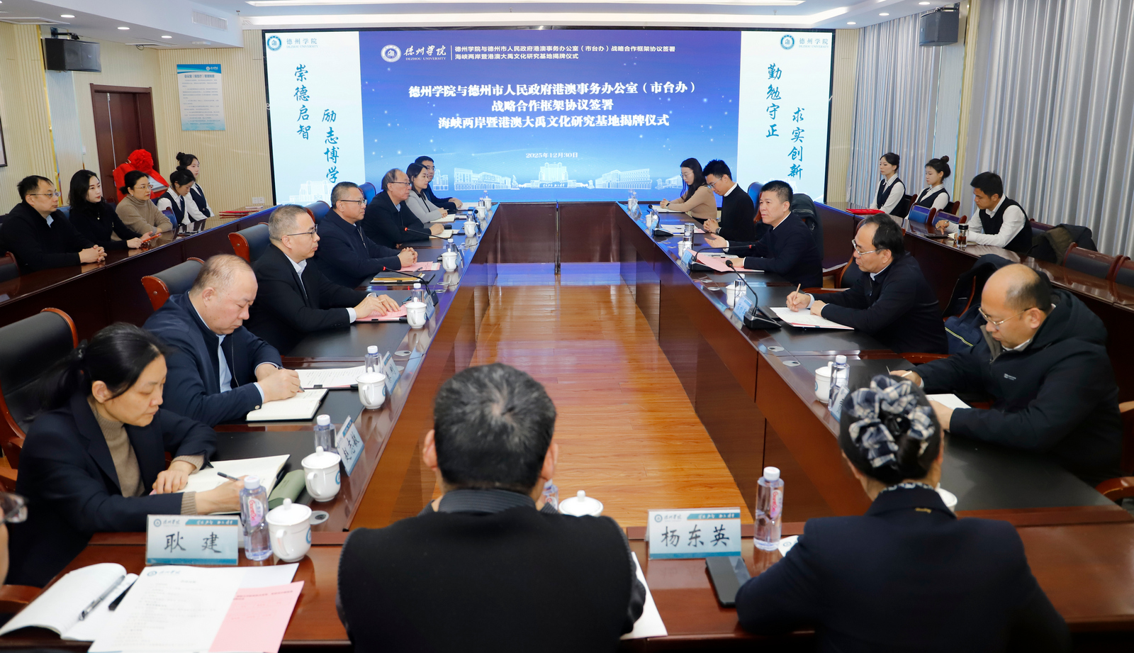 吴君代表学校对市委统战部(市港澳办、市台办)长期以来的指导与支持表示衷心感谢。他指出,此次合作是学校落实中央港澳台工作决策部署、融入地方发展大局的关键举措,标志着校地协同服务国家战略进入机制化、常态化新阶段。他强调,与市港澳办(市台办)的合作,不仅整合了优势资源、拓展了合作格局,更是传承中华优秀传统文化、增进两岸暨港澳同胞文化认同的主动作为。学校将以基地为平台,打造文化研究高地,强化学术引领,建设集学术研究、文化传播、人才培养于一体的高端中心;同时深化战略服务,发挥智库优势,聚焦区域开放合作、跨境文化交流、产业协同发展等议题,开展前瞻性研究,为政府决策提供智力支持。此外,学校将拓展资源汇聚渠道,积极与港澳台高校联合申报合作办学项目,组织青年研学营、非遗展演等活动促进双向交流,切实将校地协同优势转化为服务德州高质量发展的动力。