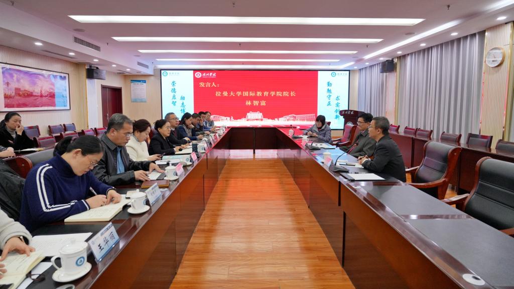 1月14日,拉曼大学副校长倪慕敏、国际教育学院院长林智富一行来Beat365官网访问交流。校党委委员、副校长徐静、刘印房在厚德楼第二报告厅出席座谈会。