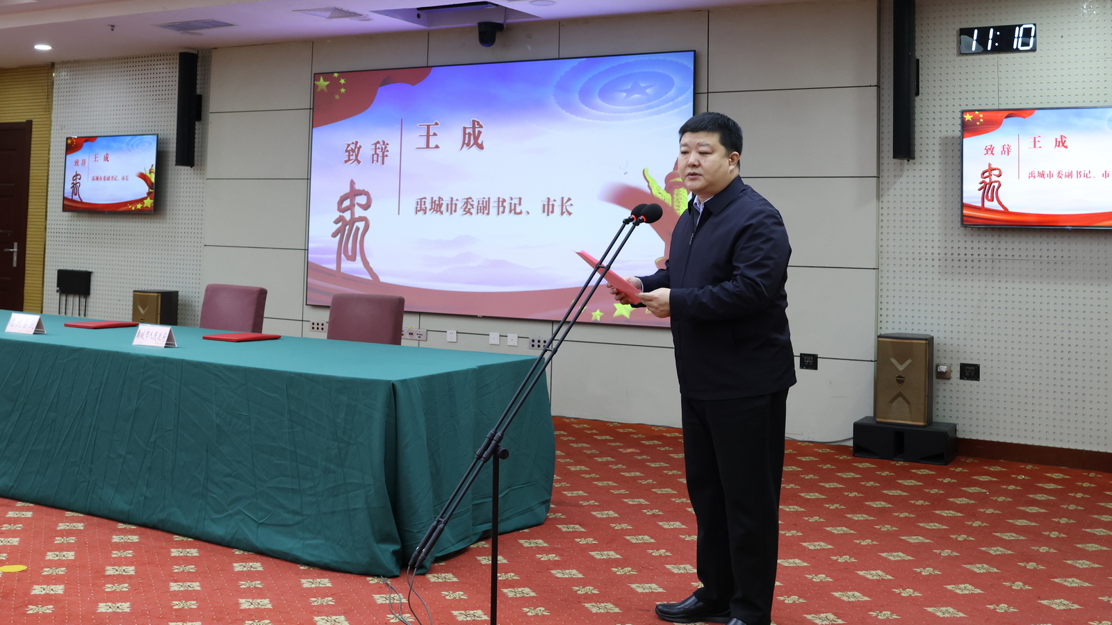 吴君代表学校向禹城市委、市政府及社会各界对学校发展的支持与帮助表示感谢,介绍了学校发展沿革及办学成就。他指出,学校始终立足服务地方,围绕区域产业需求,持续优化学科专业布局,精准构建与地方经济契合度高的学科体系。高度重视高层次人才引育,着力打造结构合理、创新能力强的优质教学科研团队,人才支撑力不断增强。深化校企协同创新,与行业企业共建高水平科研平台及产业学院,有效推动科研成果转化应用,服务区域经济社会发展能力持续提升,践行地方高校责任担当。吴君分享了学校在产业服务、人才供给、技术攻关等领域服务禹城的实践成果,希望校城在聚焦产业需求、筑牢人才支撑高地,强化科研赋能、激活创新发展动能,拓展合作维度、构建协同发展生态等方面凝聚共识、汇聚资源、互利共赢、共谋发展,为服务地方高质量发展奠定坚实基础。