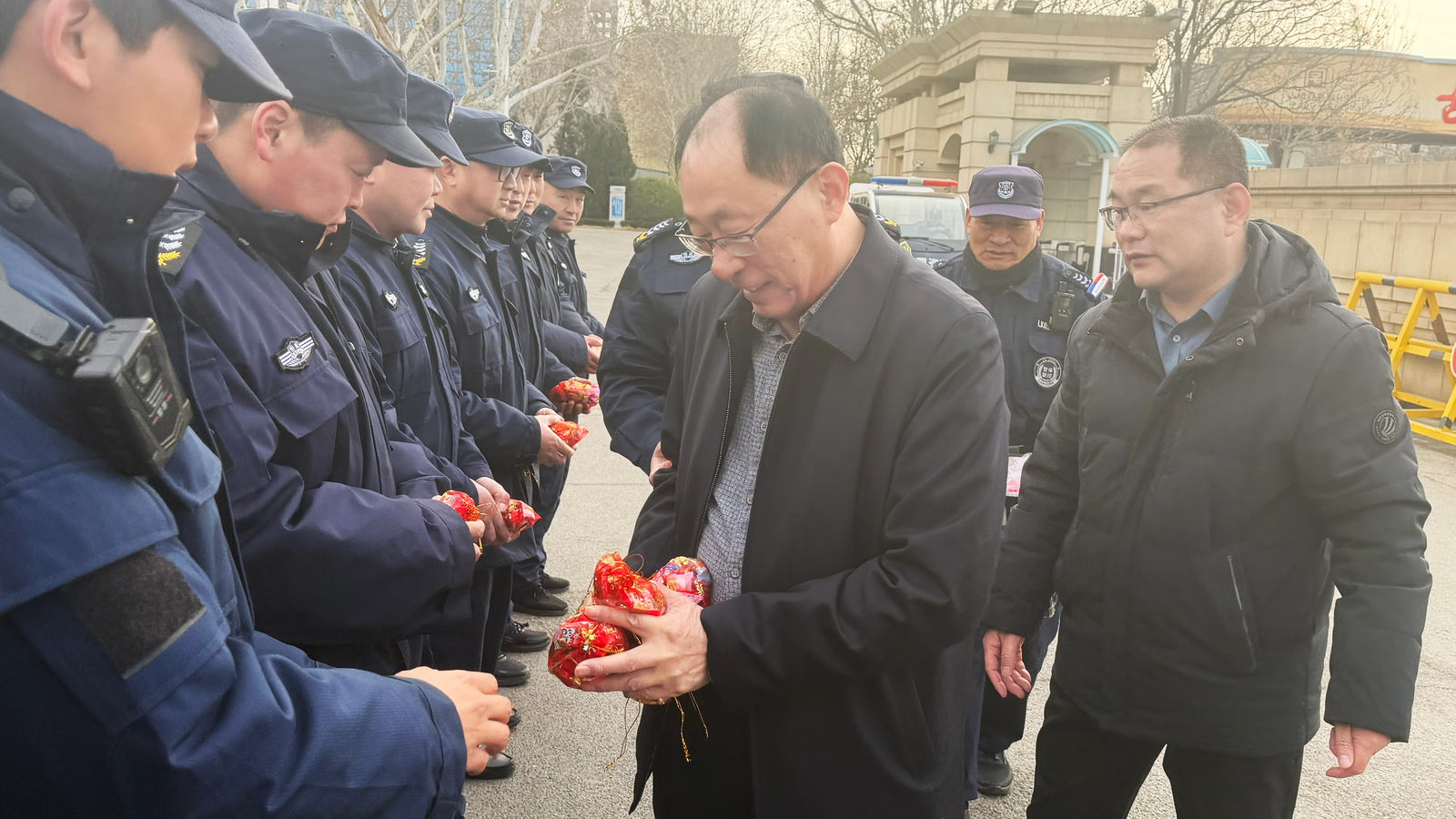 张存峰先后走访了校园门岗、学生公寓、环卫保洁点等重点区域,实地检查假期值班安排、安全保卫、后勤服务及应急保障等工作的落实情况。每到一处,他都与在岗工作人员亲切交谈,详细询问工作强度、生活保障以及家庭情况,对大家长期以来恪尽职守、默默奉献的辛勤付出表示衷心感谢。他勉励大家继续保持昂扬向上的工作热情,严格落实值班制度,抓实抓细安全管理和服务保障等各项工作,用心用情守护好校园的平安与和谐,确保全校师生度过一个安全、温馨、祥和的春节。