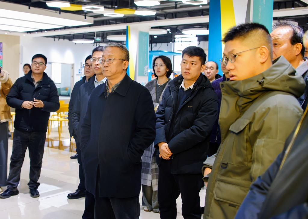 在大学生就业创业赋能中心,考察团一行依次参观就业信息展示区、生涯互动探索区、AI就业指导区、就业指导教研室、企业招聘室、分类指导工作室等功能区域,现场察看中心建设运行成效与工作场景,详细了解生涯规划教育、生涯测评、AI模拟面试、就业画像、精准就业指导等服务项目,认真听取学校就业工作理念、特色做法与“数智就业”服务体系建设情况介绍。