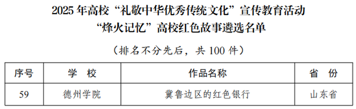 音乐学院辅导员陈璨的作品《冀鲁边区的红色银行》入选“烽火记忆”高校红色故事类优秀作品名单。作品立足地方红色资源,深入挖掘冀鲁边区北海银行的红色金融历史,系统回顾北海银行在抗日战争时期支持根据地建设、保障民生、稳定经济的历史贡献,生动呈现传承红色基因、讲好中国故事的有益探索。
