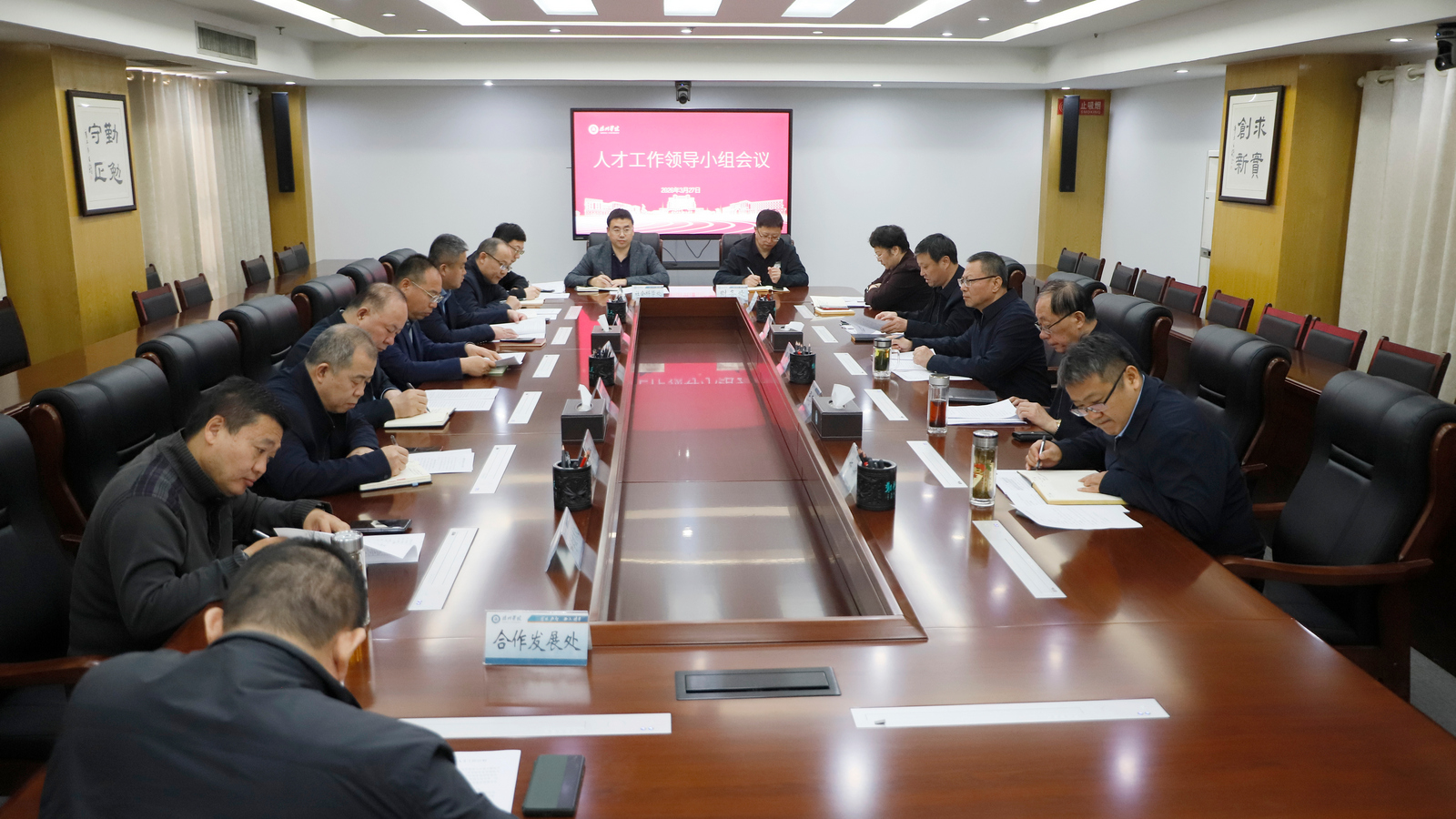 3月27日,学校2026年人才工作领导小组会议在厚德楼第七会议室召开。党委书记吴君,党委副书记张存峰,党委委员、副校长李甲亮,党委委员、组织部部长杨斌,党委委员、宣传部部长冯琨出席会议。